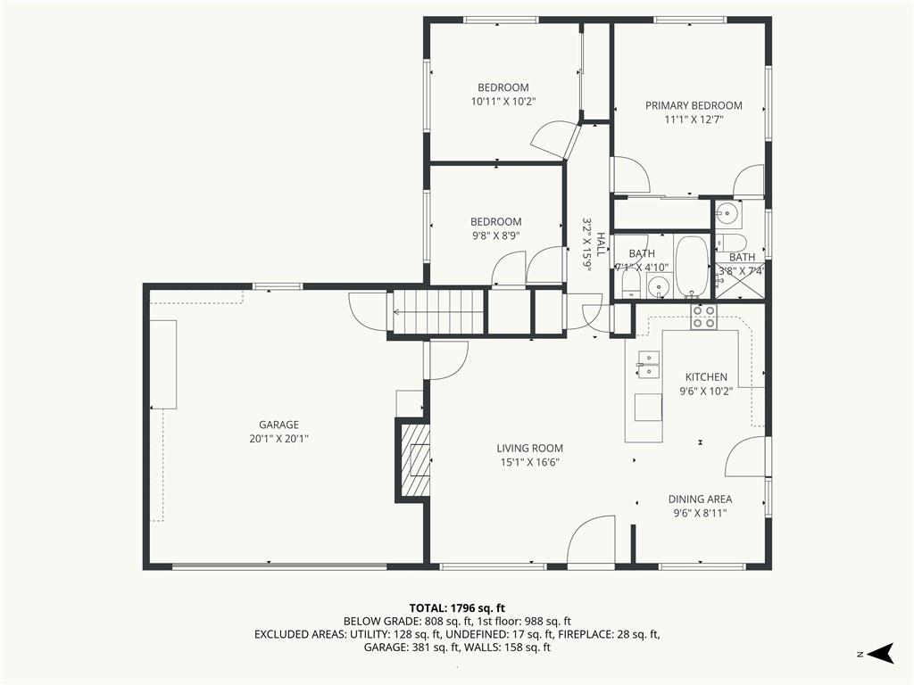 Welcome to your fully updated modern ranch—bright, open, and completely move-in ready. This beautifully refreshed home features 4 bedrooms (the master is an ensuite), 3 full bathrooms, and a fully finished lower level. Step inside to an airy main floor with new interior paint, large picture windows, and a stunning floor-to-ceiling brick fireplace with a sleek natural-wood mantel. The open kitchen shines with brand new cabinets, granite counters, stainless steel appliances, modern lighting, and a sleek subway-tile backsplash. The dining area opens to the backyard through double glass doors—perfect for indoor/outdoor living. Downstairs, the fully finished lower level offers a huge second living space with a second fireplace, new flooring, a convenient wet bar/kitchenette, a large bedroom, and an updated full bath—ideal for guests, an office, or a private suite. Outside has a fully fenced in backyard perfect for pets. Don't miss out!