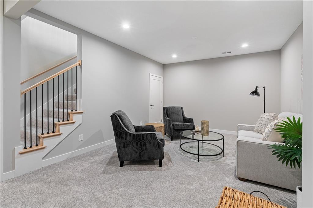 Come find out what luxury villa "Rightsized" life is like. The Newport Plan by Lambie/Grand Homes, 63R. This 3 bedroom, 3 bath home features two bedrooms on the main floor, a private bedroom in the lower level along with a full bath, linen closet, and private family room for guests. Vaulted ceilings in both the great room and Primary bedroom. Beautiful, easy maintenance, engineered hardwood floors throughout the main floor with bedrooms and closets being carpet. Quartz countertops throughout home. Double vanity, oversized covered deck, spacious pantry and so much more. GENEROUS LOT! Due to be complete March/April 2026. Don't miss out on this opportunity to make this home yours!