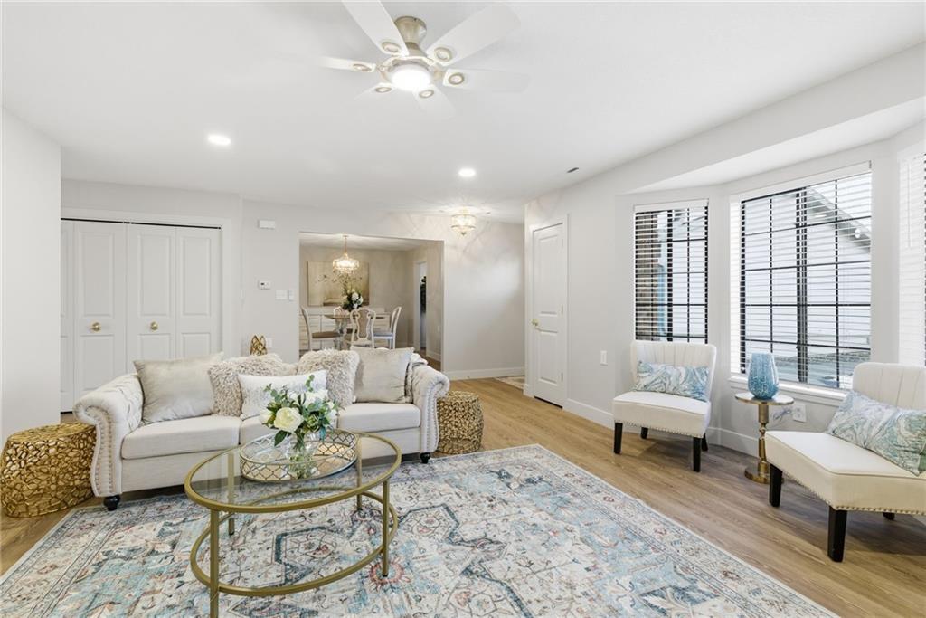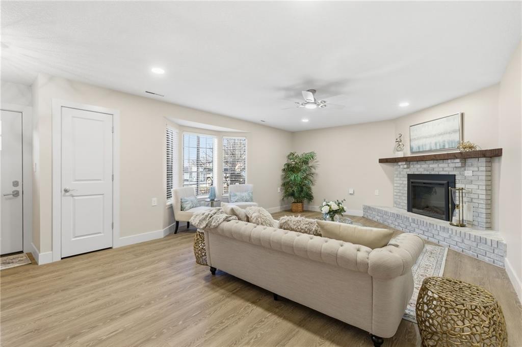 Welcome to stress-free living in the 55+ Foxwood Springs community in Raymore, MO. This beautifully remodeled home features all-new LVP flooring, baseboard trim, lighting, textured ceilings, fresh paint, updated faucets, quartz countertops, window treatments, custom cabinets, and custom closet shelving. The spacious dining room includes a built-in buffet and cabinets, and a new home office with built-in desk overlooks a large window. The kitchen offers new stainless appliances, updated cabinets, new walk-in pantry, quartz counters, and backsplash. The living room includes a new electric fireplace with remote for year-round comfort. Popcorn ceilings removed, new doors, new landscaping, and more. Enjoy maintenance-provided living with HOA services that include 24-hour security, emergency response, lawn care, snow removal, trash, exterior and interior maintenance, and utilities (water/sewer). A one-time $3,000 access fee provides use of community amenities including indoor pool, fitness center, library, lounges, meeting rooms, billiards, shuffleboard, garden plots, greenhouse, picnic area, and on-site dining, with optional housekeeping and transportation services. Experience the perfect blend of independence and community—truly a wonderful place to call home.