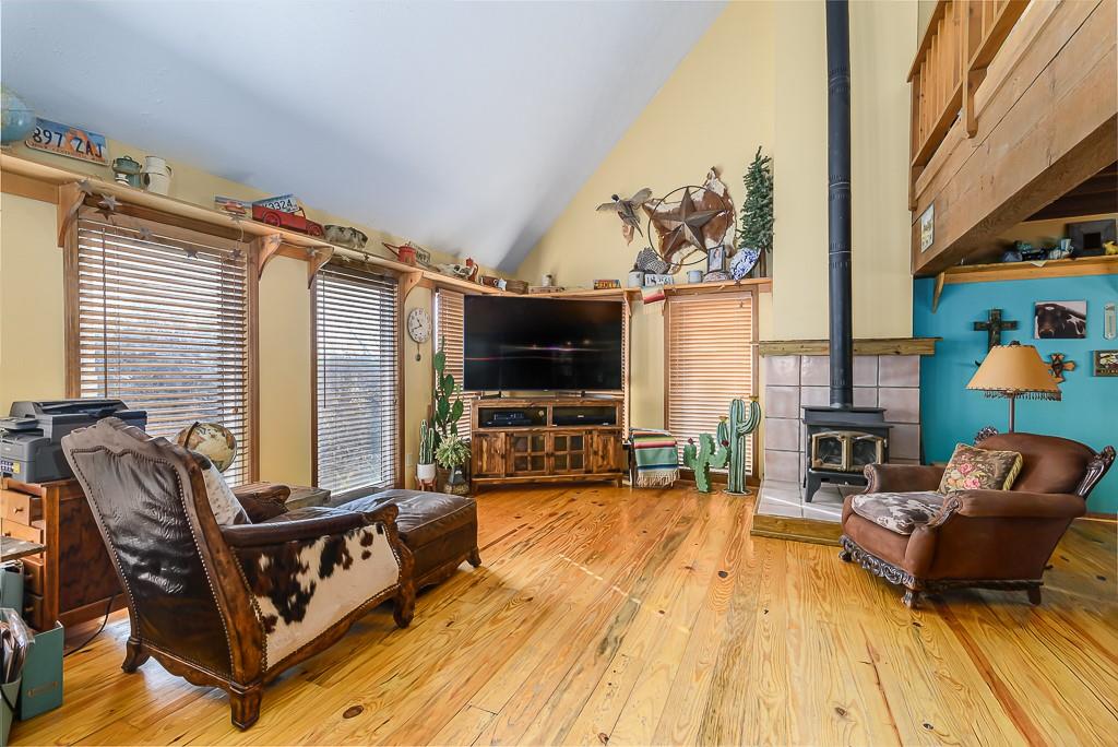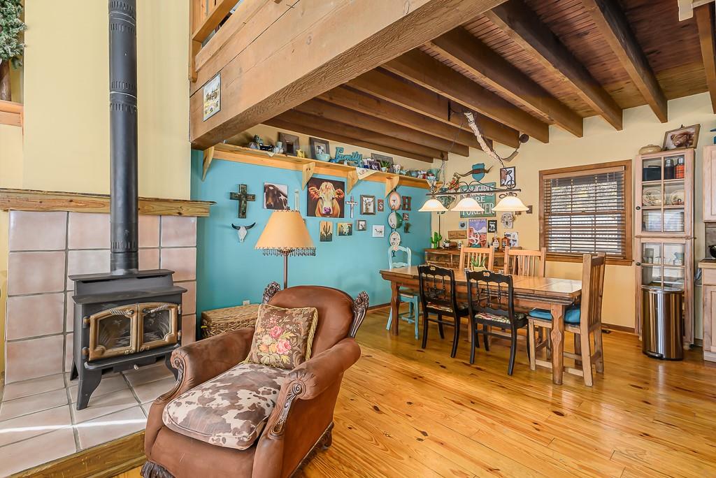 Welcome to this warm and inviting rustic home nestled on a beautiful 1-acre lot that backs directly to serene woods. From the moment you arrive, the charm is unmistakable—wide plank wood floors, a commanding exposed beam, and an open, airy layout create a space that feels both timeless and comfortable. Relax on the front porch, the perfect spot to sit, rock, and watch the world slow down. The property is a haven for nature lovers, with deer, turkey, and abundant wildlife frequent visitors to your backyard. Inside, the home’s rustic character shines through natural materials, warm wood accents, and a layout designed for easy living. Whether you're entertaining guests or enjoying quiet evenings at home, the open living spaces offer plenty of room to gather and unwind. Fire up the wood stove on a chilly night. With its peaceful wooded backdrop, classic country charm, and inviting outdoor spaces, this property offers the private sanctuary you’ve been searching for. HVAC system approx. 2 years old. On 1.13 acres, secluded and private. Wheel chair accessible ramp in the front.