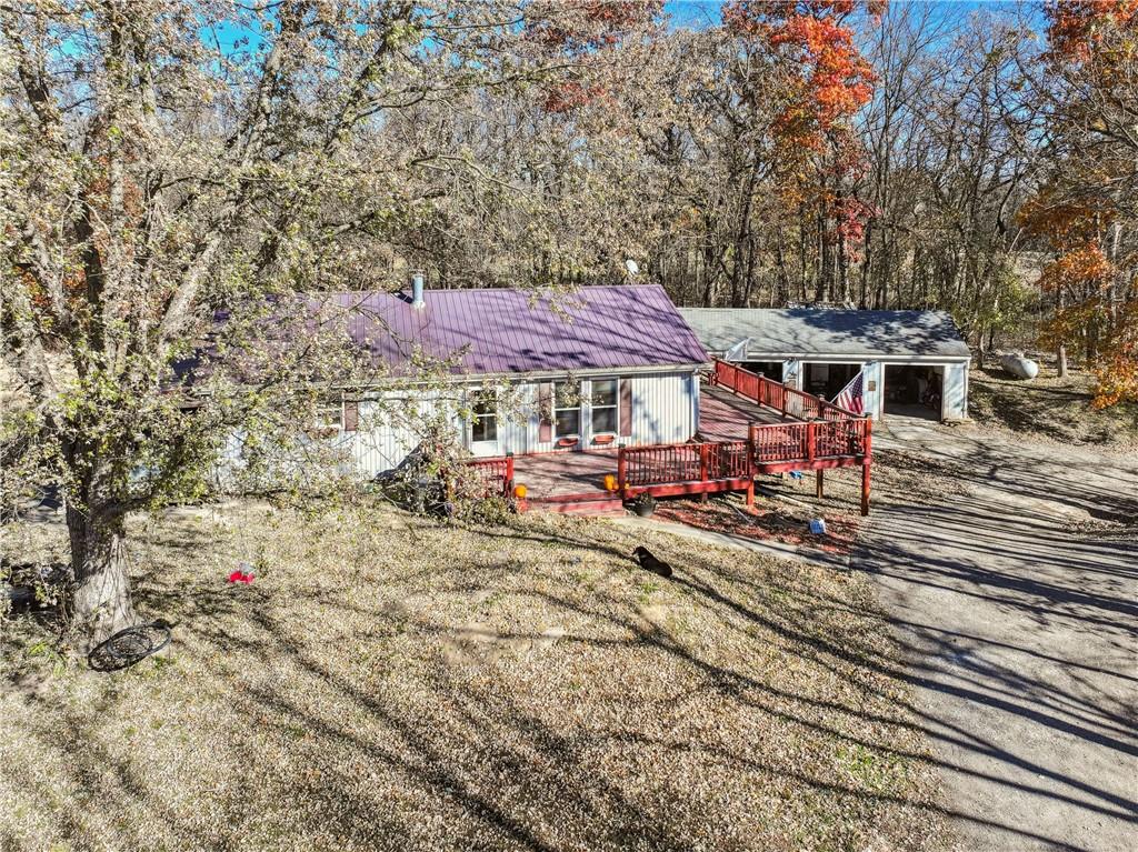 This inviting property offers comfort, space, and a peaceful country setting just one mile from town. The home features an open floor plan, pellet wood heat, and electric A/C for efficient year-round living. With 3 full bathrooms and 4 bedrooms, one is a non-conforming bedroom in the walkout basement, there is plenty of room for family, guests, or flexible use. Outdoor living shines here, with a 900-square-foot wraparound deck on two sides and a covered deck on the north side, creating several great spots to relax and enjoy the view. The property is horse-ready with a fenced paddock, and mature trees add privacy and charm throughout the acreage. Inside, the primary suite features a spacious custom shower with a rain shower head. The main level includes two full baths for convenience. The walkout basement features a large family room with a pellet stove, ideal for cozy evenings or gatherings. A 22x40 detached three-car garage and shop with electric provides excellent storage and workspace options. This property offers a balance of country living and quick access to town. It is ready for its next owner to make it their own.