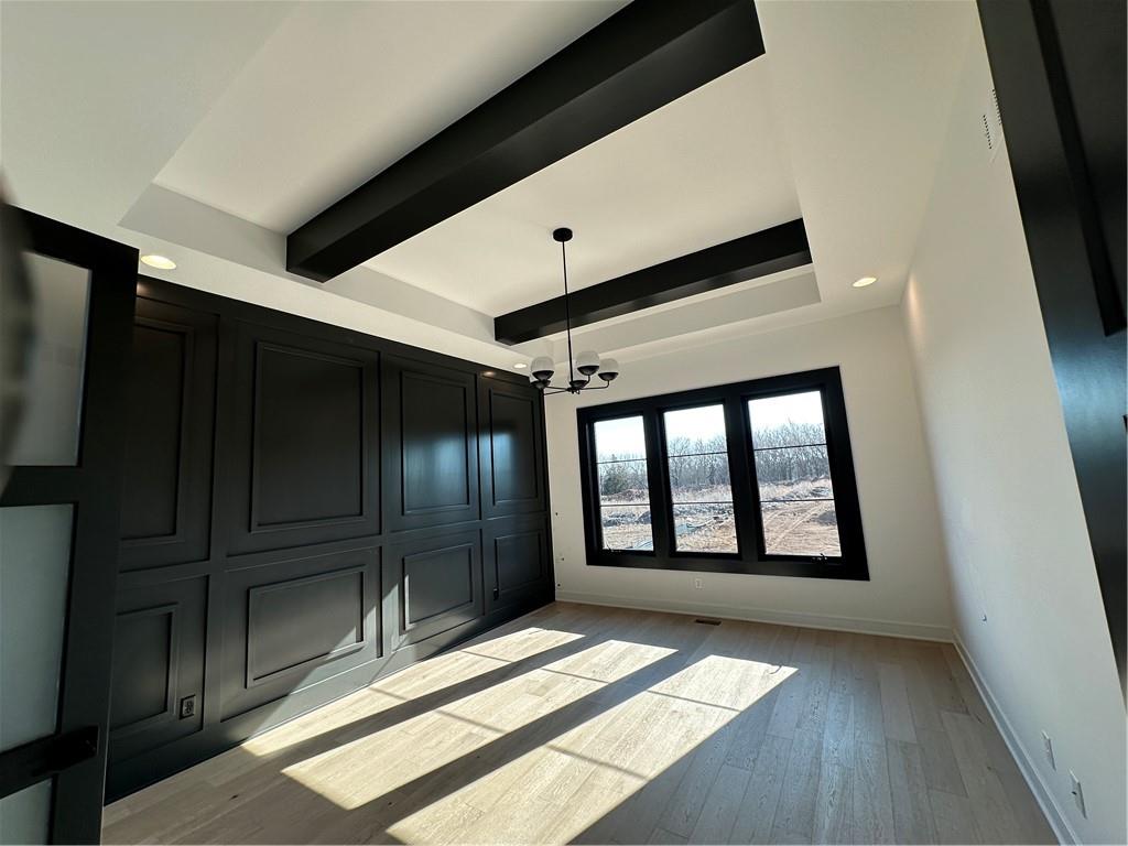 Introducing Lot 27 in Woodmyre—a sophisticated 1.5-story residence by award-winning JFE Construction. The Maplewood III Modern blends architectural drama with modern livability, beginning with a sweeping staircase. A private office off the entry creates a quiet workspace, complemented by a well-appointed full bath. The great room is anchored by a soaring two-story fireplace, perfectly paired with a gourmet kitchen featuring a custom coffee bar and expansive walk-in pantry. Sunlight pours into the southern-exposure dining room, which opens to a covered deck for year-round enjoyment. The primary suite is a serene retreat with a vaulted ceiling and a spa-inspired ensuite. On the upper level, all secondary bedrooms extend from an airy catwalk and surround a spacious loft—ideal for studying, lounging, or gathering. Photos are of previous model. Taxes and room sizes are estimated. Amenities coming include custom pool, playground, pickleball court, community pavilion and practice soccer field. Home scheduled to be complete in March!!! Schedule a showing today!