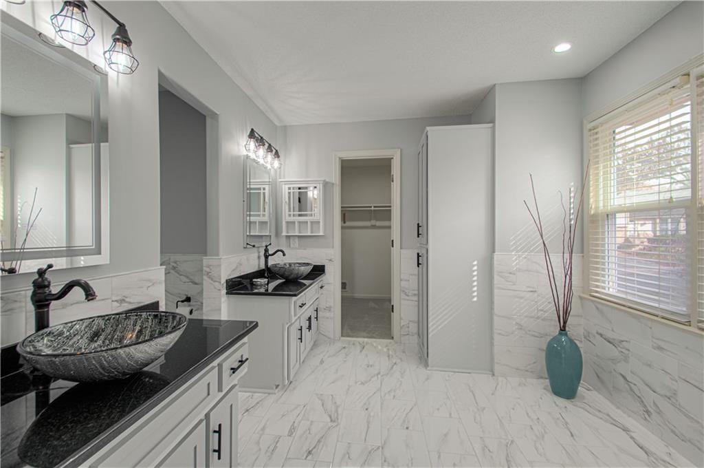Charming Updated Home with Peaceful Lake Views from your Deck! This home is all about comfort and relaxation in a beautiful setting! This home has wonderful open concept living space. The large light and airy Great Room has vaulted ceiling and striking brick fireplace which opens into the dining room with bamboo flooring! The updated kitchen effortlessly flows into the dining room, with stained kitchen cabinets, designated pantry, granite countertops , stainless steel appliances and breakfast bar. A spacious 12x12 deck is accessed from the kitchen sliding door. The huge primary bedroom is en suite with walk in closet, and luxurious hotel style updated bathroom-including separate double vanities with upgraded task lighting and lighted mirrors, extra storage, gorgeous tiled walls and a stunning walk in shower with floor to ceiling tile. The second spacious bedroom, Updated full bathroom and laundry closet are also on this level. The lower level includes the 3rd bedroom with an en suite bathroom! The finished walk out lower level offers extra space for a variety of uses—be it a game room, a home office, or your personal getaway for relaxation. Newer windows! Newer roof, air conditioner, hot water tank, dishwasher and stove! Custom Window treatments! Newer flooring including high traffic carpet, bamboo flooring and updated tile! Seller provides Old Republic Home Warranty! Enjoy the fabulous amenities in Lakewood including tennis/volleyball courts, swimming beach, boat ramps, athletic fields, swimming pools, courtesy docks and playgrounds! Whether you're enjoying the lake views or just relaxing in the backyard, this home invites you to experience effortless living and a laid-back lifestyle. Super convenient location near shopping, restaurants and highways! AAA rated Lee's Summit schools!