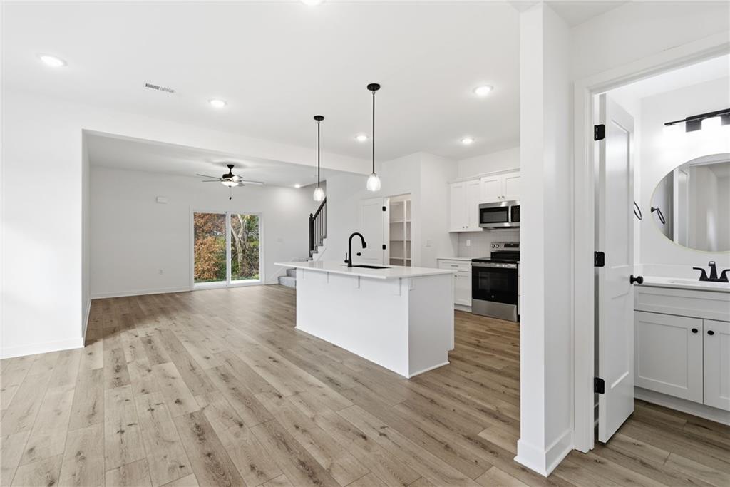 This beautiful 3-bedroom, 2.5-bathroom new construction home showcases a sleek modern design with a well-equipped kitchen featuring a large island with quartz countertops, stainless steel appliances and a spacious walk-in pantry. The main ensuite includes vaulted ceilings, a generous walk-in closet with built-in shelving, and a stylish attached primary bath. Enjoy convenient ground-level access to the rear patio and fully landscaped yard—perfect for pets, entertaining, and family activities. Spacious two-car garage offering plenty of room for parking and storage. Home is currently under construction; pictures are of a completed build and similar floor plan. Finishes and colors may vary. Estimated completion date is Dec 15.