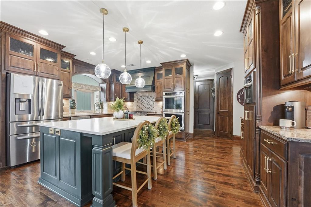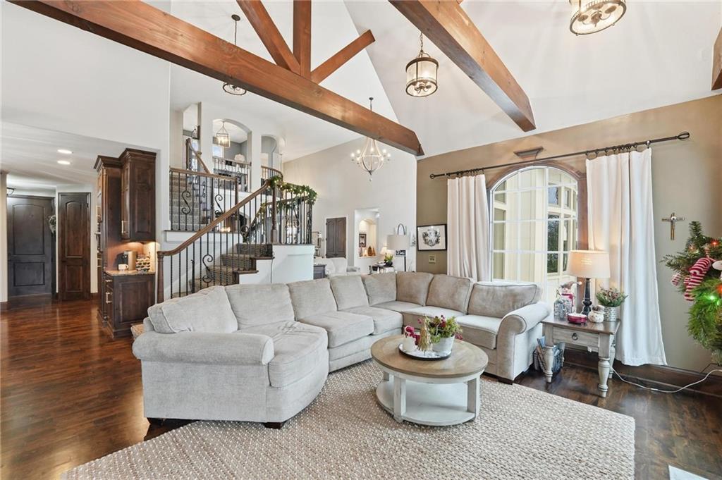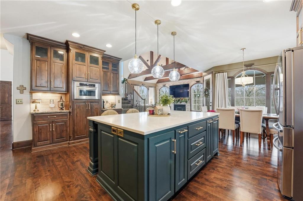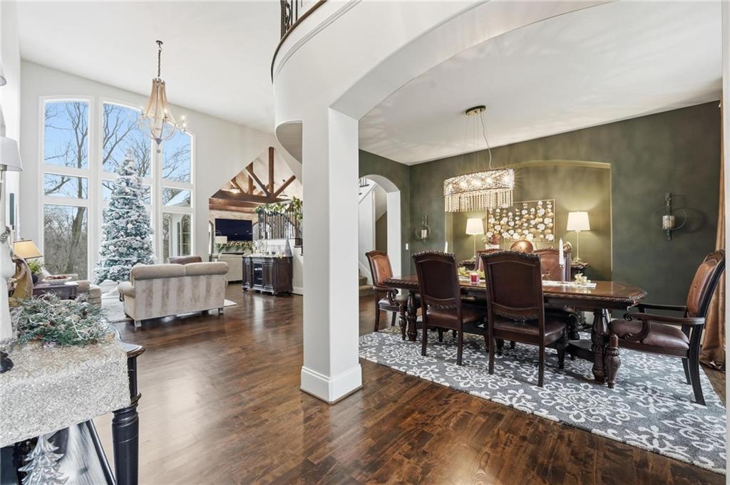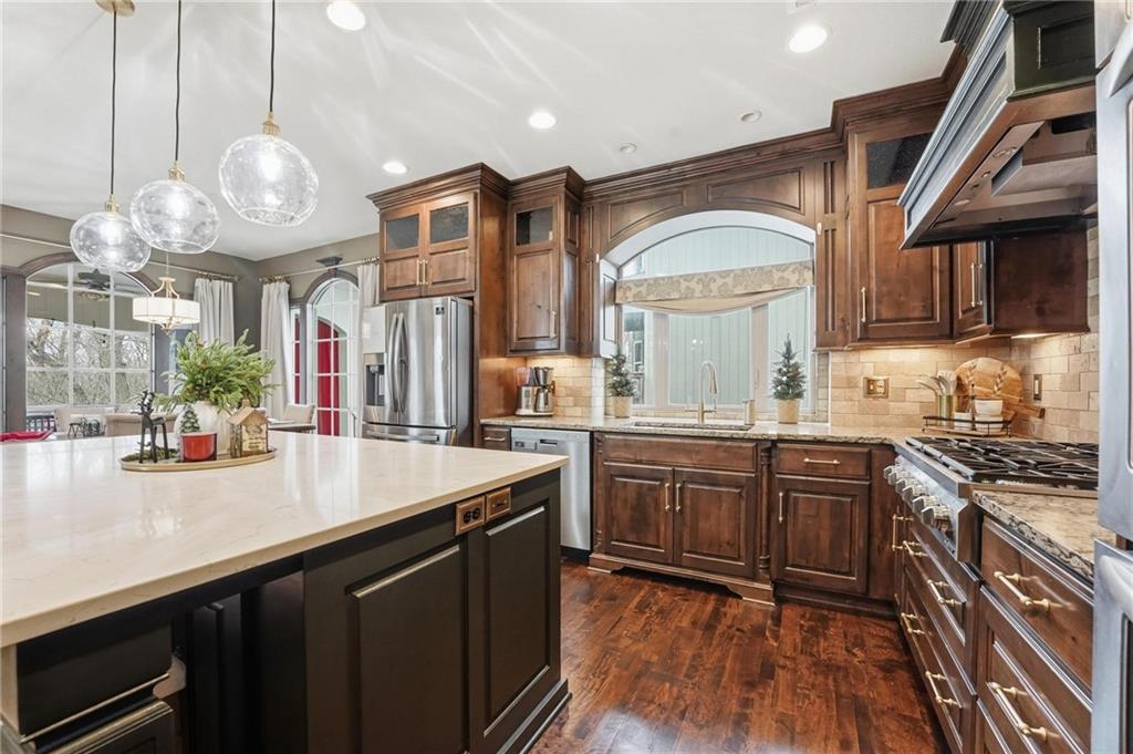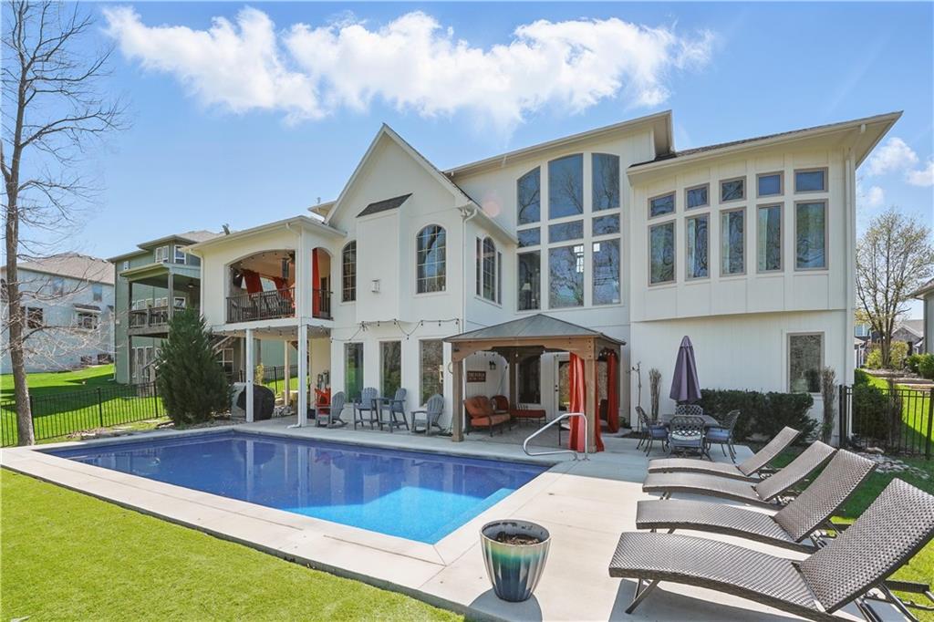 This gorgeous home delivers luxury living with a backyard that feels like a private resort. Even in the middle of winter, the pool looks like it’s just counting down the days until it becomes the star of the show. Picture sunshine, music and float filled afternoons coming soon, all framed by a beautifully kept yard and inviting outdoor spaces that make summer feel endless. Inside, soaring windows pull in natural light and highlight the wooded backdrop, giving the living areas an elevated and welcoming feel. Rich hardwood floors flow through the main level, connecting a spacious living room, elegant dining room and a beautiful kitchen with granite counters, walk in pantry, large island and an inviting eat in area. The hearth room adds another cozy gathering spot with its fireplace and treetop views. The primary suite brings comfort and style with a generous bedroom, walk in closet and a spa inspired bath with double sinks, soaking tub and a walk in shower. Upstairs bedrooms offer great space and storage with a Jack and Jill setup between two of them, plus a private full bath for the third. The walk out lower level is built for fun with a wide open rec room, dedicated TV room, bonus room and a wet bar that makes hosting easy. A covered patio overlooks the pool, the landscaping is beautifully maintained and the setting feels tucked away while still keeping you close to everything. This high end home blends luxury, comfort and a future summer that’s ready to shine.