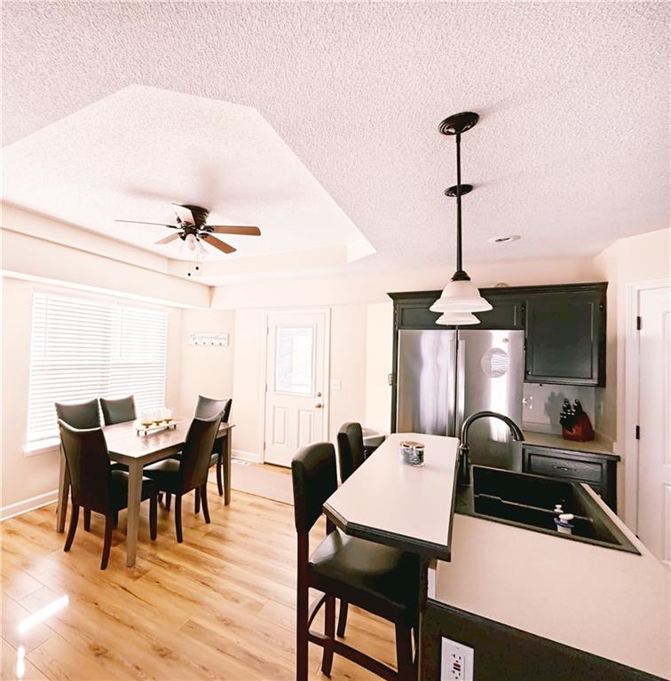 This tastefully refreshed split-entry home offers 3 bedrooms, 2.5 bathrooms, new exterior paint and smart siding, vaulted ceilings, stainless steel appliances (refrigerator included) and a spacious layout with tons of natural lighting. Enjoy a large backyard complete with a newer 6-foot privacy fence and storage shed. Inside, you'll find main-level laundry, fresh interior paint, new bedroom carpet, new LVP flooring, plus so much more. Refined, move-in ready, and designed to impress - you don't want to miss this one.