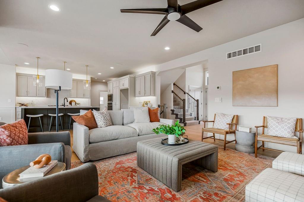 Located on a quiet cul-de-sac street in Stonebridge South, this Middleton II.I by Hilmann Home Building offers a functional 5-bedroom, 4-bath layout with detailed trim work throughout, including wainscoting in the entry, dining area, upper hallway, and primary bath, plus a trimmed feature wall in the primary suite. A front flex room with French doors provides a dedicated office or optional bedroom. The kitchen features quartz countertops, gas cooktop, under-cabinet lighting, walk-in pantry, and an oversized island that opens to the vaulted dining area with rear windows. The great room includes a modern fireplace with floating shelves and abundant natural light. A main-level full bath adds flexibility for guests or multi-use space. The upper level includes a primary suite with tray ceiling and shiplap inset, freestanding tub, Euro-style shower, dual vanities, and a signature walk-in closet with windows and built-ins. Three additional bedrooms include one en-suite and a Jack-and-Jill bath, plus a bedroom-level laundry room with folding counter and cabinetry. Outdoor living includes a covered deck with backyard access. The lower level can be finished now, offering options for expanded living or recreation space. Residents enjoy Stonebridge amenities including four zero-entry pools, two clubhouses with fitness facilities, playgrounds, sports courts, and sand volleyball areas. Heritage Park is approximately 0.5 miles away, offering a 40-acre lake, off-leash dog area, golf course, disc golf, athletic fields, picnic shelters, and trails. Served by Spring Hill Schools: Timber Sage Elementary (~1.8 miles), Woodland Spring Middle School (~2.5 miles), and Spring Hill High School (~3.0 miles). Shopping, dining, services, and highway access are nearby. Estimated completion date late March 2026. Photos are of a previous build. Taxes and square footage are estimated. Buyer/Buyer agent to verify.