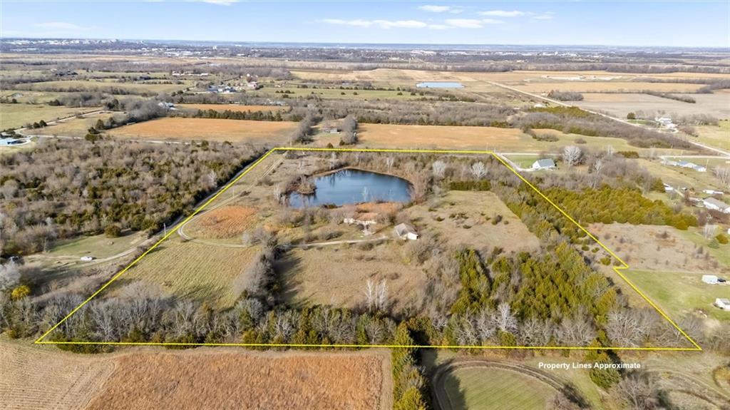 Escape to private, picturesque, and close-in country living with endless possibilities. Tucked away on a beautiful 24 acre setting on paved roads just outside the city limits of Lawrence, KS, this unique property offers a mix of mature woodlands, open pastures, a large pond and plentiful wildlife. At the center of this gorgeous land is a charming stucco, 2 bedroom, 2.5 bath, true ranch home offering 2146 sq. ft of main floor living area, an open floor plan with a large open great room with wood burning fireplace, an open kitchen with stained cabinets, an island with breakfast bar, a pantry, all appliances and a dining room with large radius picture window overlooking the gorgeous views of the pond. Rounding out the main level is a master suite with vaulted ceiling, large walk-in closet with built-ins, a master bath with stacked washer/dryer, jetted tub, walk-in shower, and water closet; an additional guest bedroom, a full bath with tiled shower/tub, and a half bath off the kitchen. The full walk-out basement was originally finished with an additional 1100 sq. ft. of living area including a recreation room, family room, 3rd bedroom, full bath and ample storage areas, but due to a water leak with subsequent mold, the basement has been remediated with floor and wall coverings removed down to the studs, which now await your personal decorative touches. Don't forget the matching stucco outbuilding/workshop/garage which offers a kitchenette, an office, a full bathroom, a mini-split HVAC and 4 overhead garage doors for all your cars, equipment and workshop needs. Whether you’re envisioning a hobby farm, renovating the existing home, building your dream home, a quiet weekend retreat or a place to enjoy hunting, fishing, ATV’s, riding horses and exploring nature, this property awaits your decorative vision to create a lifestyle worth dreaming about. Don't miss this opportunity to Bid Your Price. Bidding Ends: December 30 at 1:00 pm.