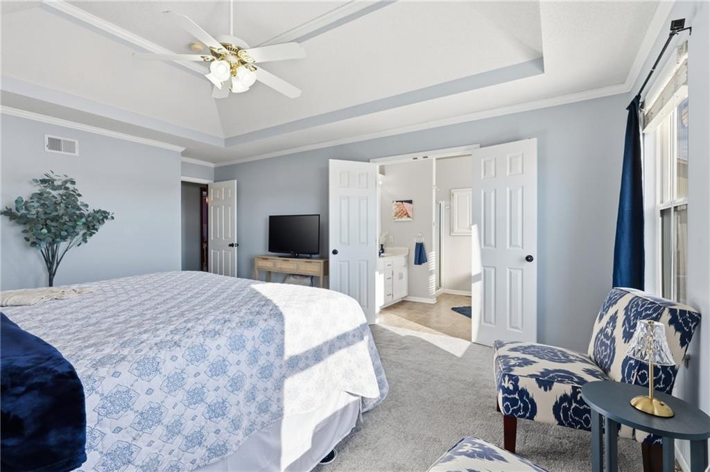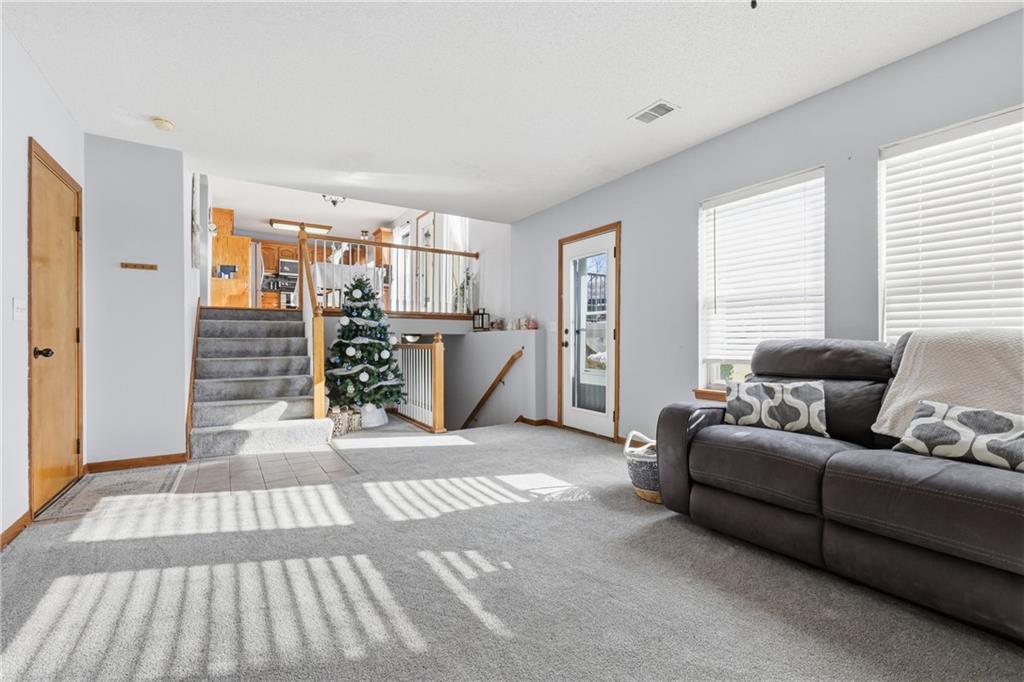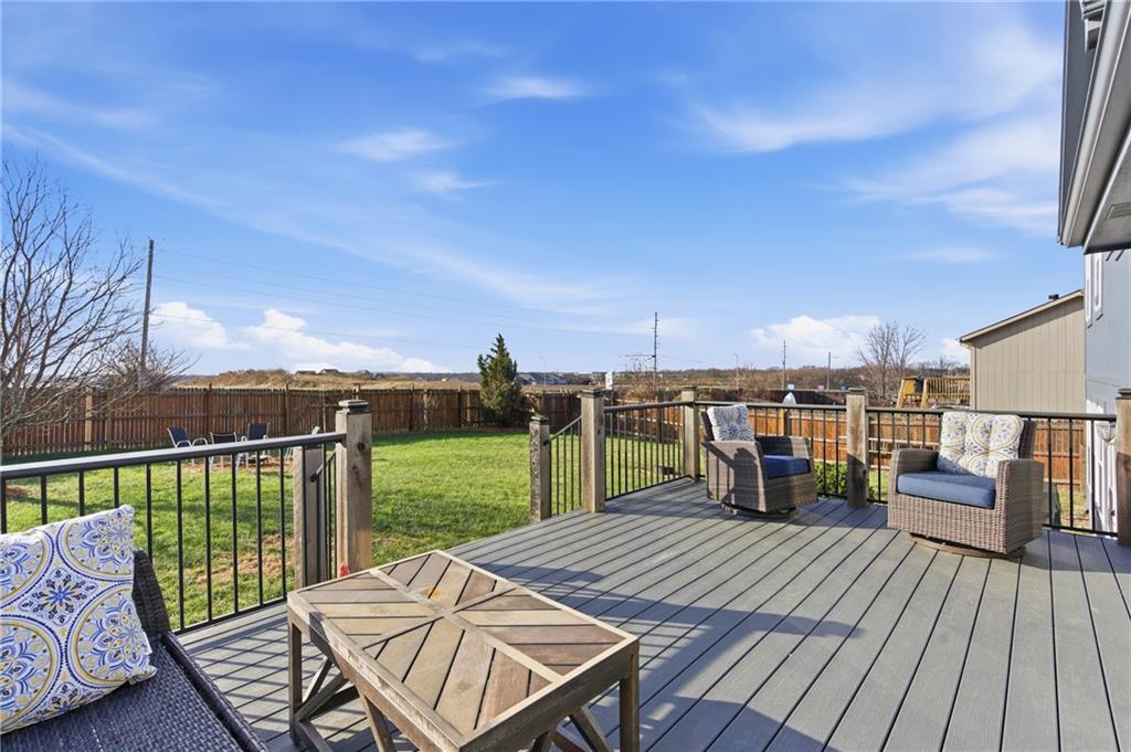 Welcome to this lovely atrium split style home, perfectly positioned (with-in walking distance) to the brand new EAST TRAILS middle school, The popular Happy Trails dog park, James A Reed wildlife preserve, where you can enjoy nature trails and great fishing and The exceptional Sunset Valley Elementary is a short drive! The neighborhood POOL is a nice feature and is just around the corner! This home boasts 3 bedrooms, 3 bathrooms & an oversized 3 car garage! This floorplan is a great for entertaining! Nice size front porch to enjoy morning coffee, And ENJOY the best sunsets on the oversized composite deck w no neighbors behind you! Very large living room, with vaulted ceilings> kitchen/dining combo (refrigerator stays) with hardwood floors ,ss appliances, granite counters, picture windows overlooking the new composite deck with a large fenced yard and a nice new fire pit area! The family room has a cozy fireplace and walks out to a private patio! Upstairs you will find a laundry room (washer/dryer stay) next to the hall bath. Master bedroom is huge with a walk-in closet, ensuite with double sinks and a jacuzzi tub! 2nd and 3rd bedroom are nice size and have good closet space. The basement was just finished and could be a 4th non-conforming bedroom, movie room, or man cave! New paint inside and out and newer carpet!