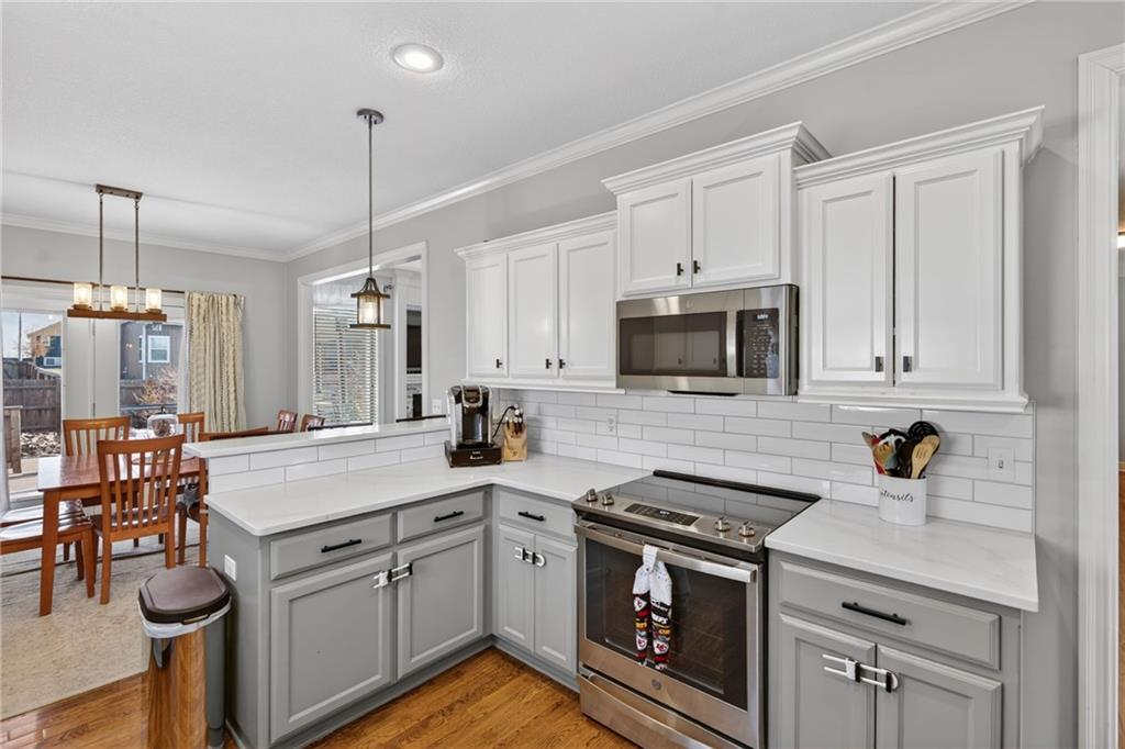 Gorgeous and new to the market! Beautifully updated 3-bedroom, 3-bath home with basement potential for a 4th bedroom! This move-in-ready property features a fully remodeled kitchen with new quartz countertops, classic subway tile backsplash, painted cabinetry, and all-new appliances including range, refrigerator, microwave, and dishwasher. Thoughtful improvements continue throughout with new flooring in the living room, hallway, and guest bath, along with a refreshed guest bathroom showcasing shiplap accents, painted cabinetry, new mirror, stylish floating shelves, and updated flooring. The primary bathroom has been remodeled with a new shower, shiplap detailing, new mirrors, and painted cabinets, creating a modern yet comfortable retreat. The entire upstairs interior has been painted, while custom storage cabinets were added to the laundry room for added organization and convenience. Exterior updates are just as impressive, with painted siding and shed, gorgeous brick accents, new front exterior lighting, a brand-new roof, and new garage doors. Enjoy updated front and backyard landscaping ideal for entertaining or relaxing. With ample living space, quality upgrades, and the option to add a 4th bedroom in the basement, this home offers style, comfort, and future flexibility in one exceptional package. Buyer and Buyers agent to verify taxes, schools and room sizes.