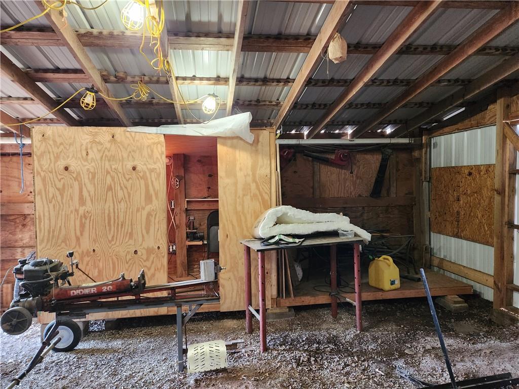 Private Country Oasis on 2 Acres. Escape to your own private oasis on this beautiful, fully fenced 2-acre property, perfectly nestled and surrounded by quiet farmland for ultimate privacy, all while enjoying the picturesque, maintenance-free view of the neighbor's pond. The house itself was extensively remodeled in 2021 and feels like new, featuring an inviting open-concept living room and kitchen where light pours in from both sides, creating a bright and lovely space for reading or cooking, complete with a granite-topped island. Currently configured with three full baths and a unique main bedroom suite upstairs (formed by combining two bedrooms by removing a closet, which can easily be put back to restore three conforming bedrooms). This home is efficiently heated by a gas furnace upstairs and wood-burning stove used to warm the lower level. You'll find a covered front porch and a generous deck out back leading to the 18-foot round above-ground pool, ideal for enjoying the country views; the walkout lower level adds immense value, featuring a laundry room/full bath combo, a nice-sized family room, two non-conforming bedrooms, and still plenty of storage area. Outside, the 2-acre lot is fully equipped with amenities, including a barn with two distinct work areas, a double carport, and a greenhouse perfect for growing flowers and vegetables. Come see, fall in love, and make this meticulously maintained country retreat your next place to call home.... Ask about the Furniture. Almost everything is for sell, inside and out including the gazebo!