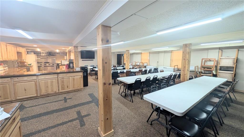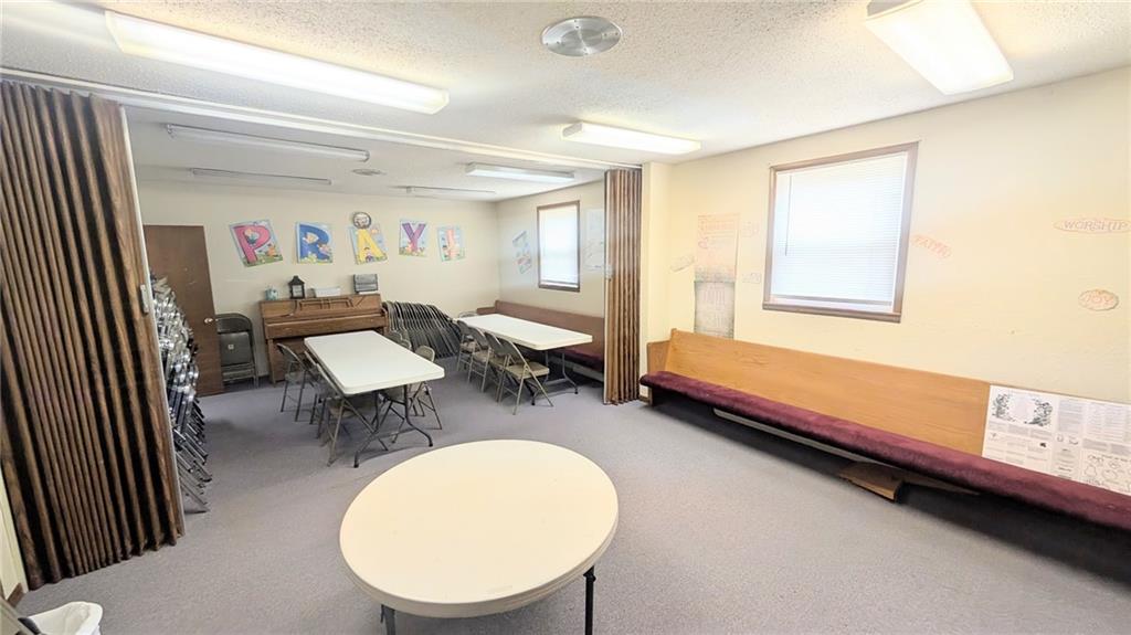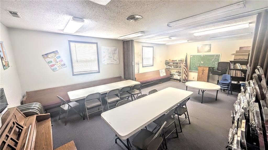 This expansive property in El Dorado Springs, Missouri, offers incredible potential for a variety of uses, making it an ideal investment. While currently configured as a church, its versatile layout and features lend themselves perfectly to numerous other ventures. Consider the possibilities: this structure is well-suited for an adult daycare or a childcare center, offering ample space for activities and dedicated areas. With some creative vision, this property could also be transformed into a unique residential dwelling, providing spacious living areas and a distinctive design. Beyond these, you could envision a community center, a private school, or even a specialized event venue—the options are truly vast. The walkout basement is a true highlight, boasting a beautiful and highly durable pebble epoxy-style floor. This unique finish is not only visually appealing but also incredibly practical for high-traffic areas. The kitchen is another standout, featuring stunning epoxy countertops and an abundance of cabinetry—perfectly equipped for a commercial kitchen (please note: the owner will be removing the stove and griddle). This property in El Dorado Springs represents a remarkable opportunity to invest in a highly adaptable space with significant upside potential.