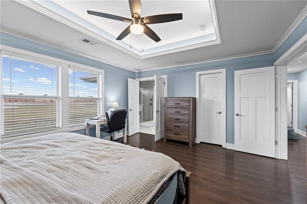 Welcome home to this stunning Monterey 2-story—full of charm, function, and upgrades throughout. With excellent curb appeal and a fully fenced backyard, this home truly checks all the boxes. Step inside to an inviting, open main floor designed for easy family living and effortless entertaining. The kitchen, breakfast area, and living room flow together seamlessly, featuring a large center island, gas range, gorgeous granite/quartz counters, and an enormous pantry—perfect for the home chef. You’ll also love the versatility of the main-floor 5th bedroom, which can double as a home office or formal dining space. Upstairs, the spacious primary suite offers a spa-like bathroom and an oversized walk-in closet you’ll have to see to believe. Secondary bedrooms are generously sized with great natural light. Located just moments from Nike Elementary and with quick access to I-35, you get convenience and a peaceful country feel. Tuscan Farm also includes upgraded standard features like front and side yard sprinklers, beautiful stone counters in all baths, and modern finishes throughout. Don’t miss your chance to own a like-new home in an incredible location—this one is truly move-in ready!