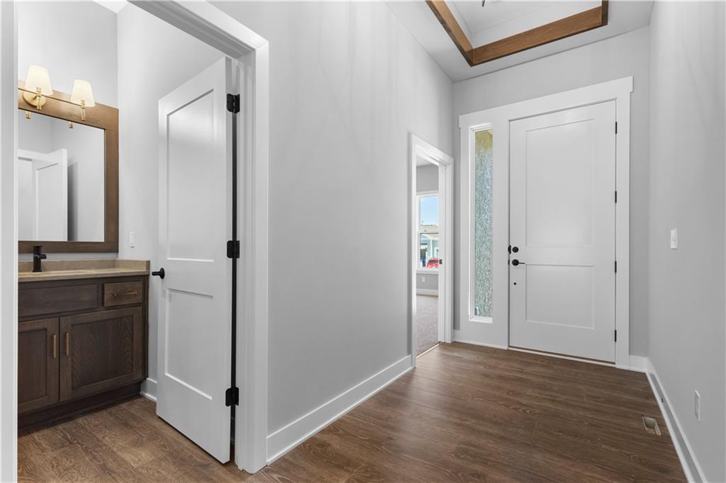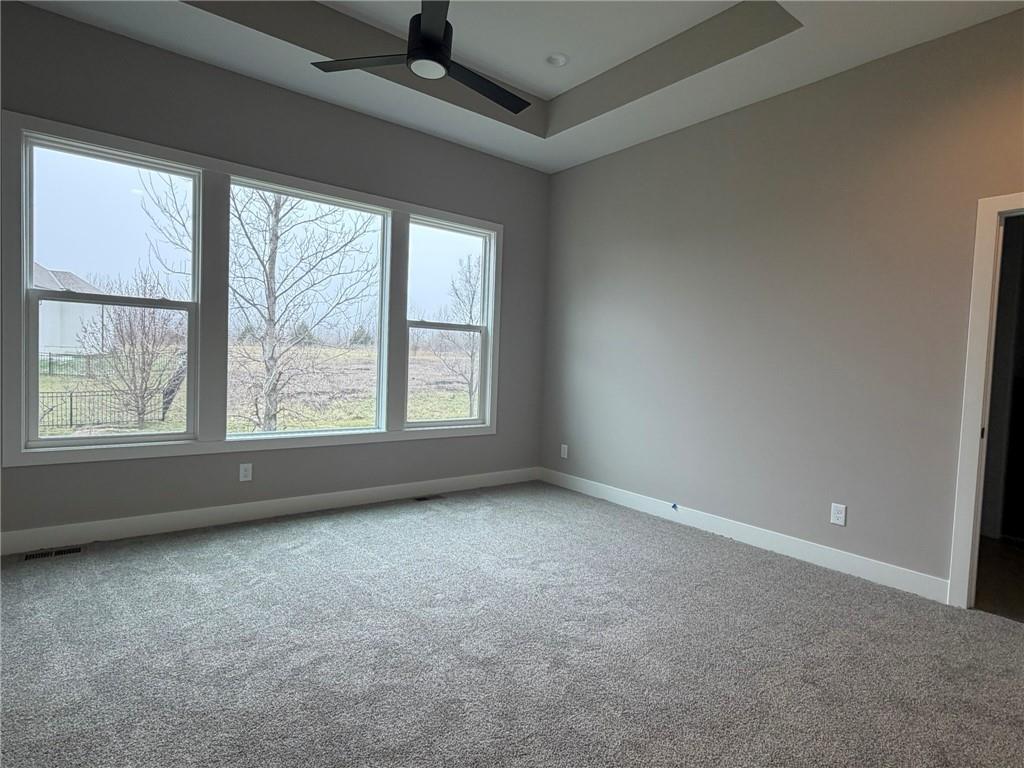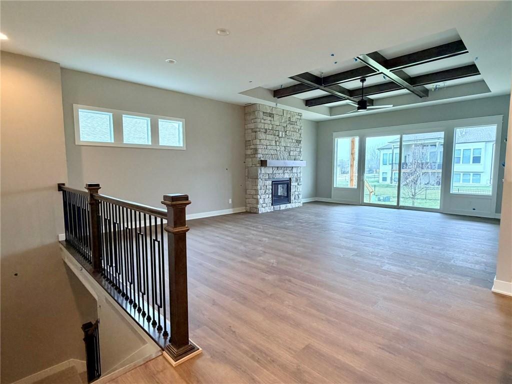 This stunning Sonoma reverse 1.5-story home features two primary suites on the main level, each with its own private ensuite bath. The main primary suite includes a zero-entry shower, an expansive walk-in closet with custom shelving, and a built-in dresser. For added convenience, the laundry room is located on the main level with access from both the primary bathroom and the mudroom. The gorgeous kitchen features GE stainless steel appliances, a deluxe stained wood hood, stained cabinetry with full-extension soft-close drawers and doors, a trash pull-out, quartz countertops, and a 36" gas cooktop. Offering abundant storage and counter space, it opens seamlessly to the dining area and great room, where a stained coffered ceiling creates an inviting gathering space. Ten-foot ceilings further enhance the impressive floor-to-ceiling stone fireplace in the great room. The lower level offers an oversized rec room, a stained wet bar with glass doors, glass shelves, interior, under cabinet and shelf lighting. Two spacious bedrooms, and a full bath. The Sonoma boasts one of the best lower-level layouts for family, perfect for entertaining and offers generous room for storage and flexibility. Additional upgrades include a high-efficiency furnace, upgraded stainless steel GE dishwasher, under-cabinet lighting, low-maintenance Trex deck with aluminum rails, upgraded carpet and lighting, and durable RevWood laminate flooring that is both scratch- and water-resistant. Kensington Farms offers exceptional amenities such as a pool, playground, greenspace, and convenient access to Downtown Lee’s Summit, Summit Fair, shopping, and dining. This home is located in the Maintenance-Provided section of the community. For an additional $160 per month, homeowners receive weekly lawn mowing (front and back), a six-step annual fertilizer program, one yearly grubworm treatment, spring re-mulching, a spring yard clean-up, and snow removal for accumulations of 2" or more.