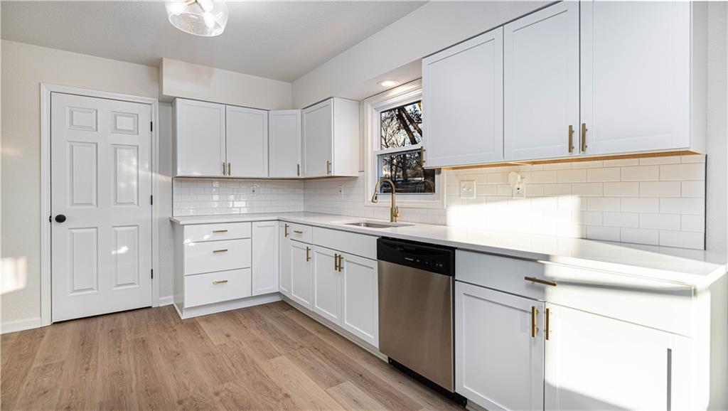 This beautifully remodeled home is truly move-in ready, featuring a brand-new electrical panel, furnace, AC, water heater, windows, flooring, interior trim and doors, exterior doors, and fresh paint inside and out. Enjoy a stunning new kitchen with quartz countertops, new cabinets, and appliances, along with updated bathroom vanities, showers, and lighting throughout. Flooded with natural light, the home offers a welcoming living room with a cozy fireplace and a partially finished walkout basement that's ready for your personal touches. Outside, a fenced backyard provides privacy and space to relax. All of this is in a prime location close to shopping, entertainment, highway access, and more! Agent/Owner