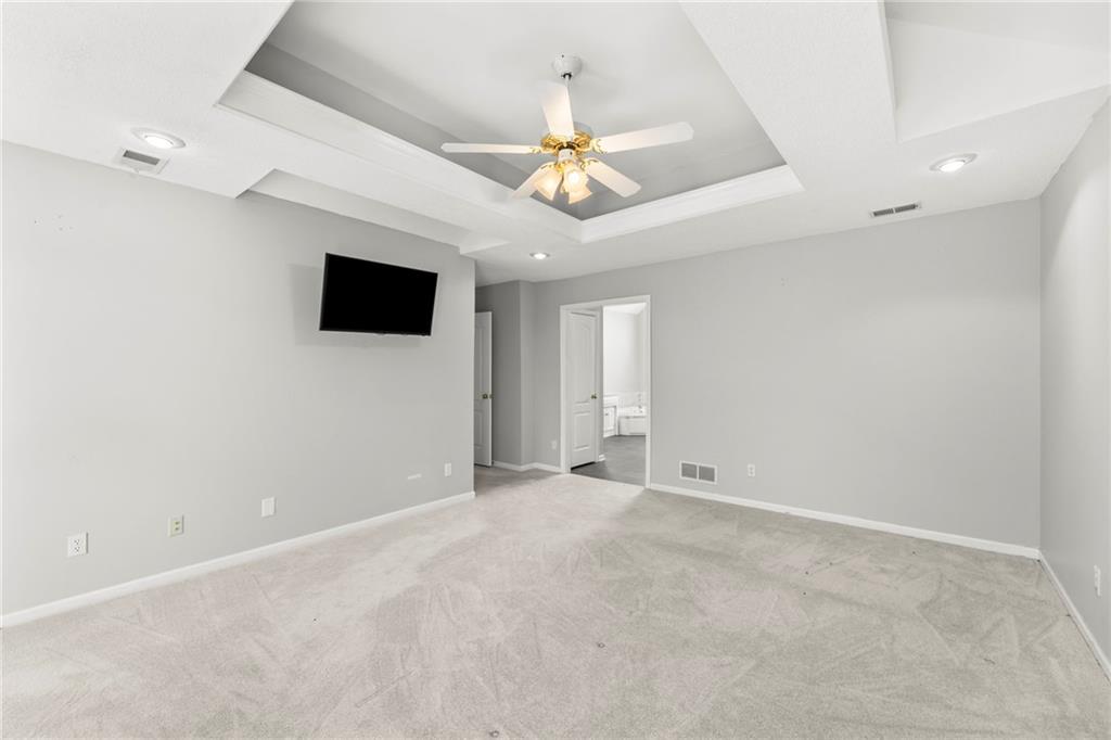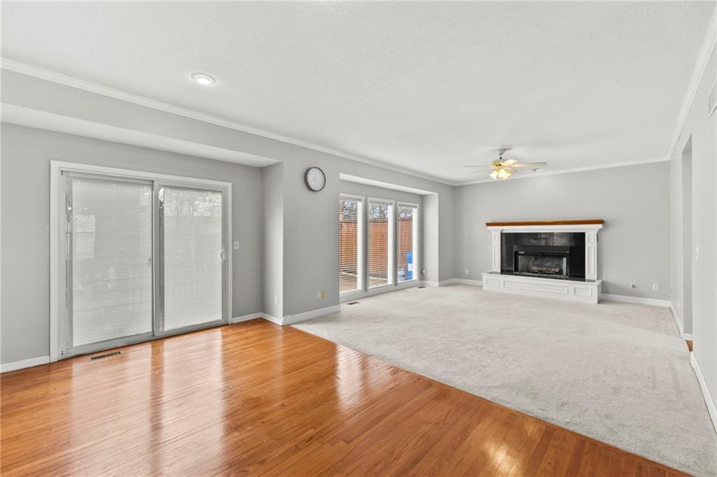 Home that has been freshened with updated paint, flooring and finished basement. Lovely Great room with fireplace that opens to the backyard with deck and gazebo type sitting area. Lots of trees and pond for koi fish. Formal living room would be great for a home office as well, formal dining room is perfect for the entertaining of guests. Large kitchen for food preparation with loads of cabinets and counter space. Eat in dining area as well that connects with great room. Basement is finished with another office and a non-conformin bedroom and another bath and family room.