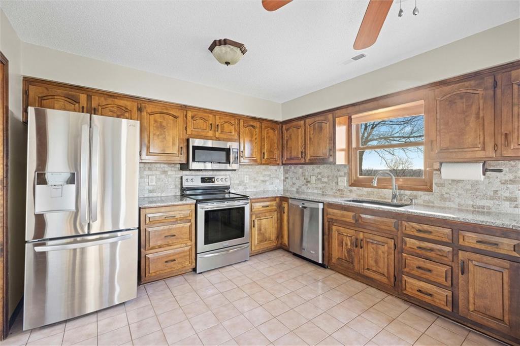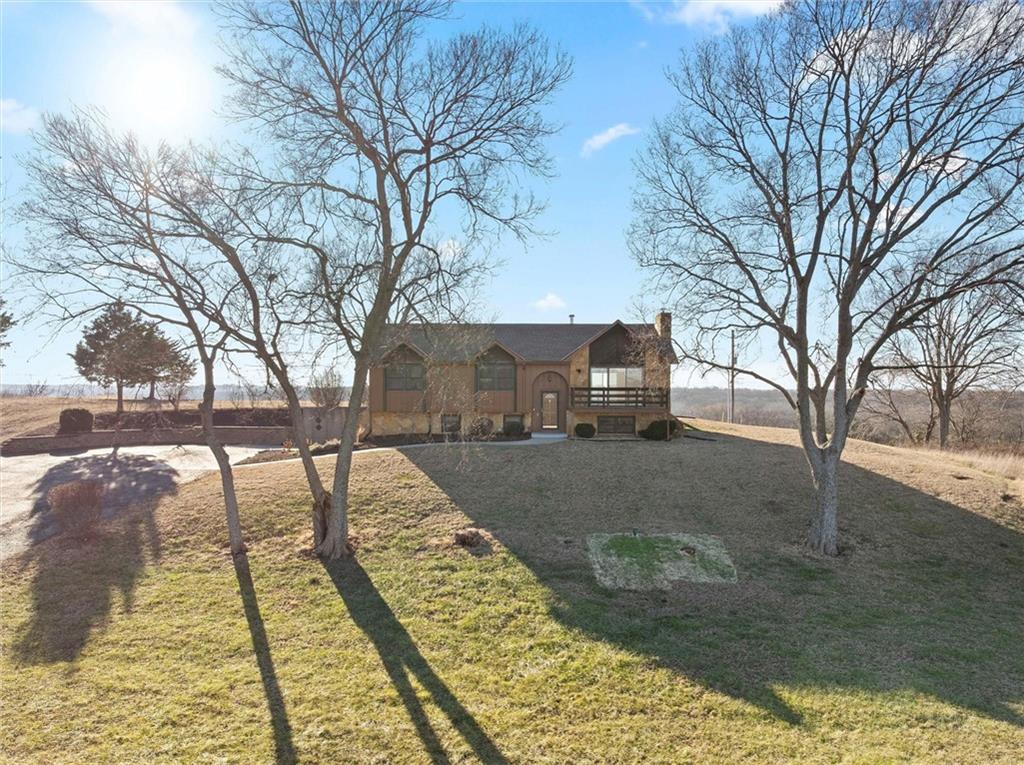 Horizon Ridge Place is a well-cared for home set on approximately 7.20 acres of high-elevation ground, capturing big-sky views in nearly every direction. The property has been pre-inspected, with improvements completed for buyer peace of mind. Inside, you will find a comfortable layout with 3 conforming bedrooms and 3 bathrooms, plus a finished basement that includes an additional non-conforming bedroom and extra living or recreation space. A new wood-burning stove in the basement adds both warmth and character, creating a cozy gathering spot on cooler days. The main floor connects easily to outdoor decks where you can watch sunrises, sunsets, and distant city lights across surrounding brome and pasture. The home includes an attached 1-car garage, and the outbuilding with loft offers additional parking, workshop, and storage options ideal for hobbies, equipment, or future projects. Hard-surfaced access just off US Highway 40 places you minutes from Topeka, with direct routes to I-70 and a straightforward drive toward Lawrence, while still enjoying a quiet rural setting near Tecumseh. This all-electric home is serviced by the rural water district, and AT&T fiber is in place, making this a rare utility combination for country living. Simple protective covenants govern the surrounding Horizon Ridge Estates acreage. Buyers of Horizon Ridge Place will have the first opportunity to purchase the adjacent Horizon Ridge Estates Tract 8, making it possible to expand the homestead footprint if desired.