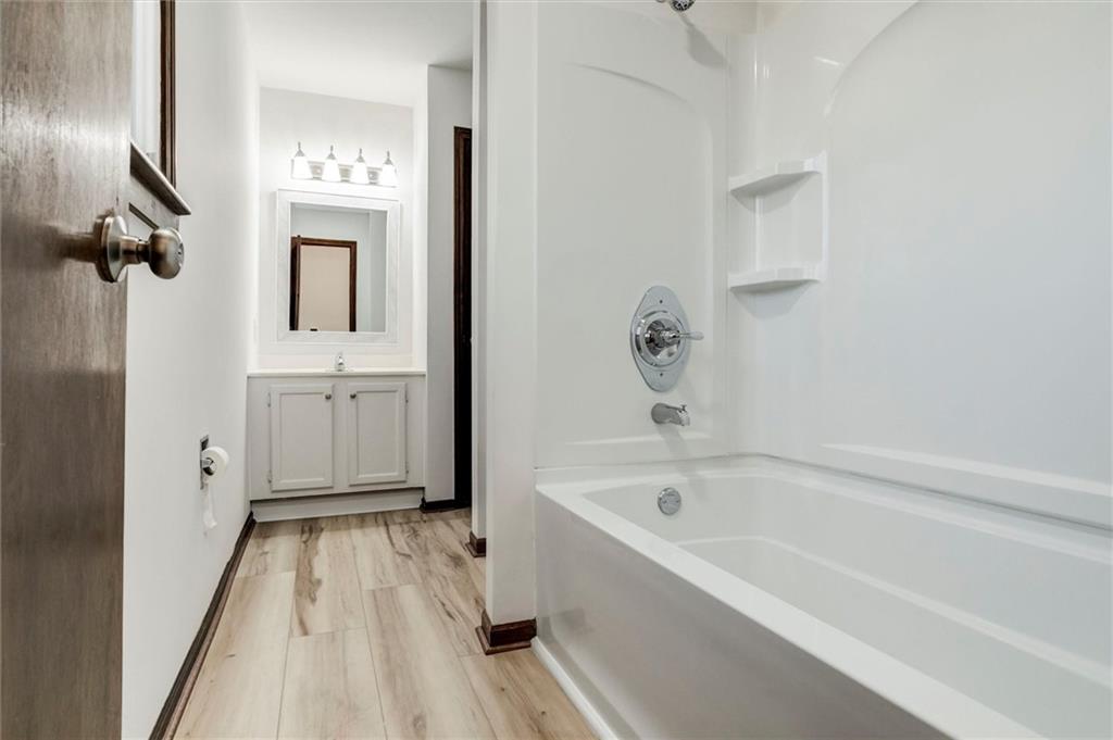 Beautifully updated move-in ready home in a great location! So many updates. New roof, new vinyl siding, new Champion windows, new exterior doors, new carpet and luxury vinyl plank flooring, fresh paint, updated lighting, new knobs, pulls, mirrors. New fridge, washer & dryer stay with the home. Large living room with tons of natural light, and a wood-burning fireplace, walks out to covered patio. Kitchen cabinets have been painted, all appliances stay, large walk-in pantry and main floor laundry room. Spacious bedrooms upstairs, with a primary suite with walk-in closet. New tub and surround. Plenty of storage space. Close proximity to schools, conveniences, and access to all that Lawrence has to offer.