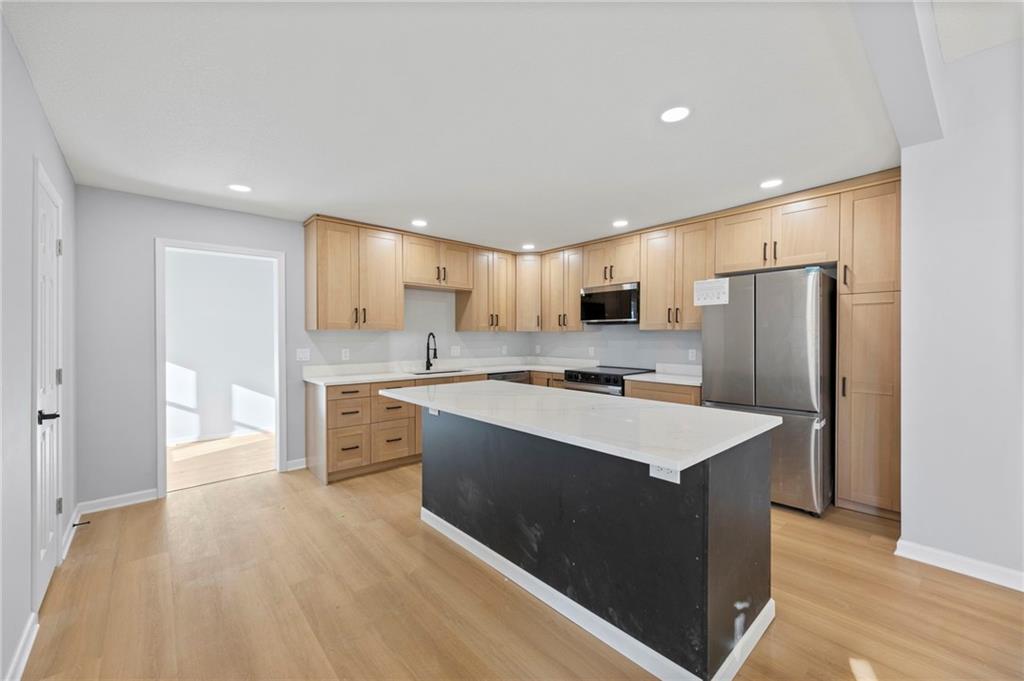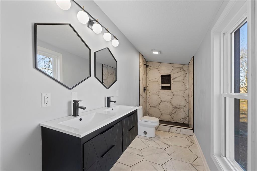 Welcome to 236 S Ash St in Ottawa, KS — a beautifully renovated 2,315 sq ft home on a peaceful 1.17-acre lot. This 4-bedroom, 2.5-bath property feels like a brand-new custom build and qualifies for Ottawa’s 5-year tax abatement program, offering valuable long-term savings. The open main level features all-new flooring, paint, lighting, and finishes, highlighted by a stunning custom kitchen with premium cabinetry, high-end countertops, stylish hardware, and a spacious walk-in pantry. The main-floor primary suite provides convenience and privacy, while the updated bathrooms showcase tiled showers and modern vanities. Upstairs includes additional bedrooms and a unique indoor overlooking balcony, adding character and an airy architectural touch. Outside, enjoy the expansive 1.17-acre backyard with endless potential for outdoor living, a shop, or gardening, plus a storage shed for added functionality. Major updates include new electrical, plumbing, siding, roof, and windows, offering peace of mind for years to come. With luxury finishes, thoughtful design, and extensive upgrades throughout, this home truly stands out in the Ottawa market.