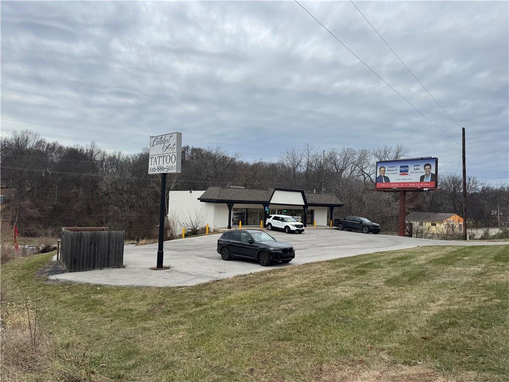 Unique free-standing two-level retail store. Opportunity for two different users, with two access points. Ideal for all users, with the opporunity to use the top level as a showroom and bottom for storage. The sale includes the income from the billboard. Great access and visibility from 291 Highway Southbound.