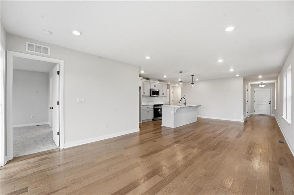 HOME IS MOVE IN READY! Summit's Sienna home plan offers everything you need for comfortable living. On the main level, you'll enjoy an open-concept layout that seamlessly integrates the kitchen, dining room, and living room, creating a spacious and inviting atmosphere perfect for both everyday living and entertainment. This floor also features a convenient half bath, and a well-placed laundry room situated next to a generous pantry. The primary suite, also located on the main floor, is a true retreat. It includes a luxurious bathroom with double sinks, a large shower, and an expensive walk-in closet, providing both style and convenience. Upstairs, you'll find two additional bedrooms, thoughtfully positioned near a spacious full bath. Looking for additional space? Consider finishing the lower level to include a rec room, another bedroom, and an extra bathroom, enhancing the versatility and functionality of your home.