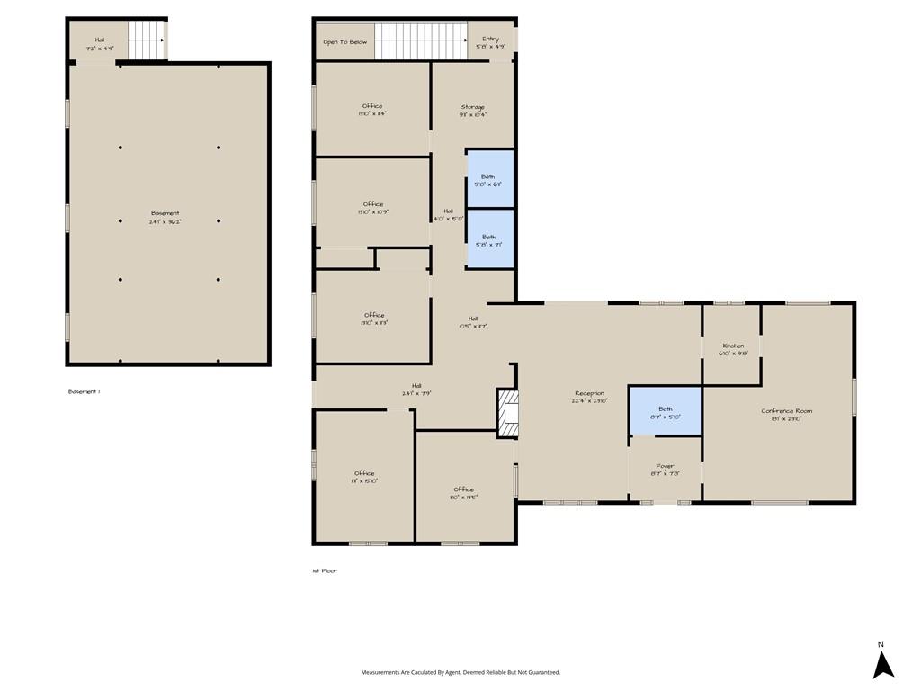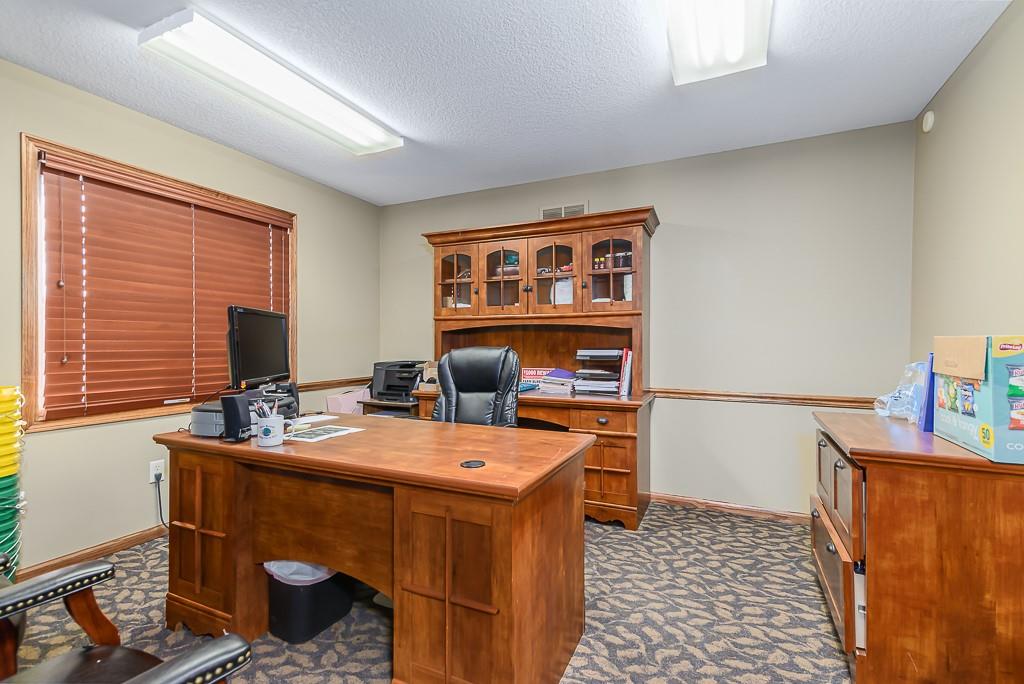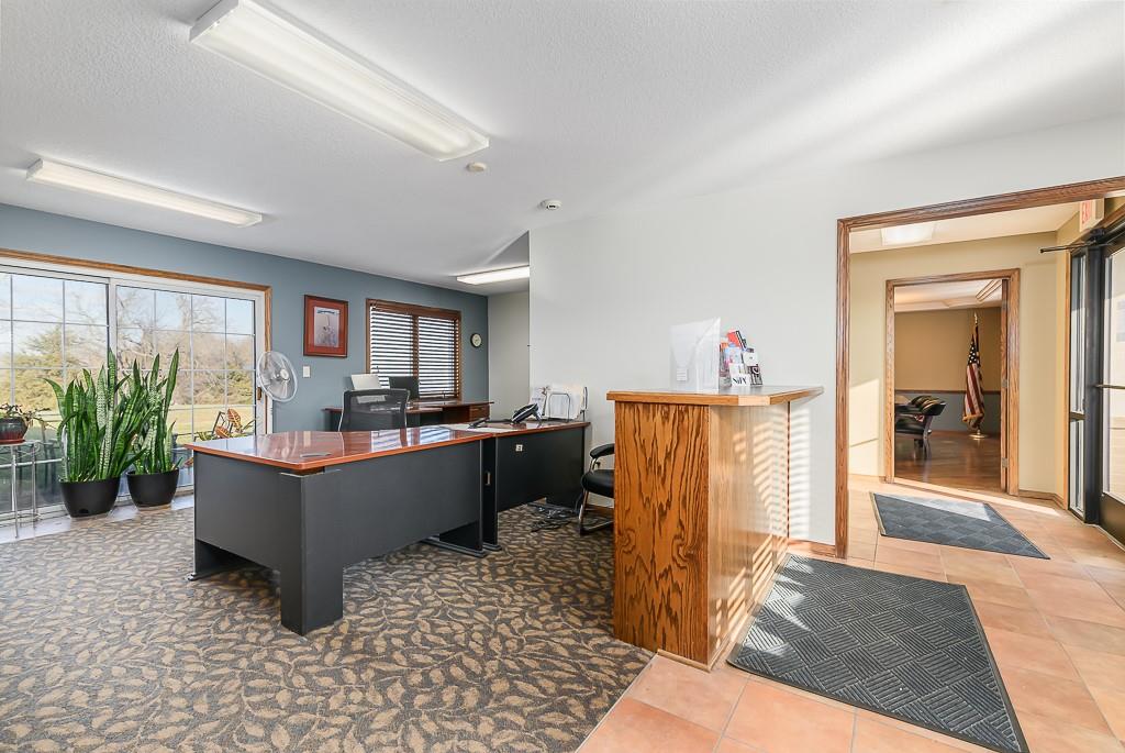 2536 SQ FT OFFICE WITH MULTIPLE WORKSPACES AND GREAT LOCATION! This well-kept commercial building offers 5 private offices, a welcoming reception area with a brick fireplace, a conference room with hardwood floors, a kitchen, and three half baths with accessible features. A partial basement gives you extra storage space, and the outdoor patio adds room for breaks or informal meetings. The building is built to last with a metal roof, stucco and brick siding, and new gutters. A large parking lot provides plenty of room for guests and staff, and the prominent street-front signage makes your business easy to find. With flexible space that works well for many professional uses, this property is move-in ready and set up for success.