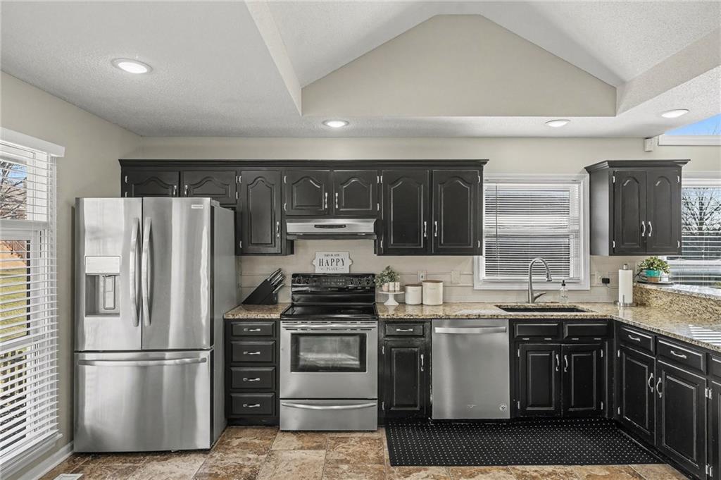 Fresh, modern paint inside and out sets the tone for this beautifully updated home. An expansive, open-concept kitchen anchors the main living area, enhanced by vaulted ceilings, skylights, and abundant natural light for a bright, upscale feel. Retreat to the oversized primary suite, complete with a double vanity, walk-in closet, Jacuzzi tub, and separate walk-in shower. Two additional upstairs bedrooms provide excellent space and comfort. The main level offers inviting living space with a stylish fireplace, while the finished lower level adds a spacious family/rec area, the fourth bedroom, and a walkout to the yard. A versatile sub-basement delivers outstanding storage, hobby space, or room for future expansion. All nestled in the sought-after Carriage Crossing neighborhood.
