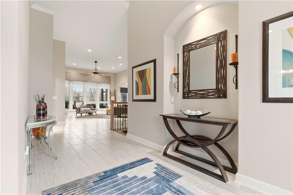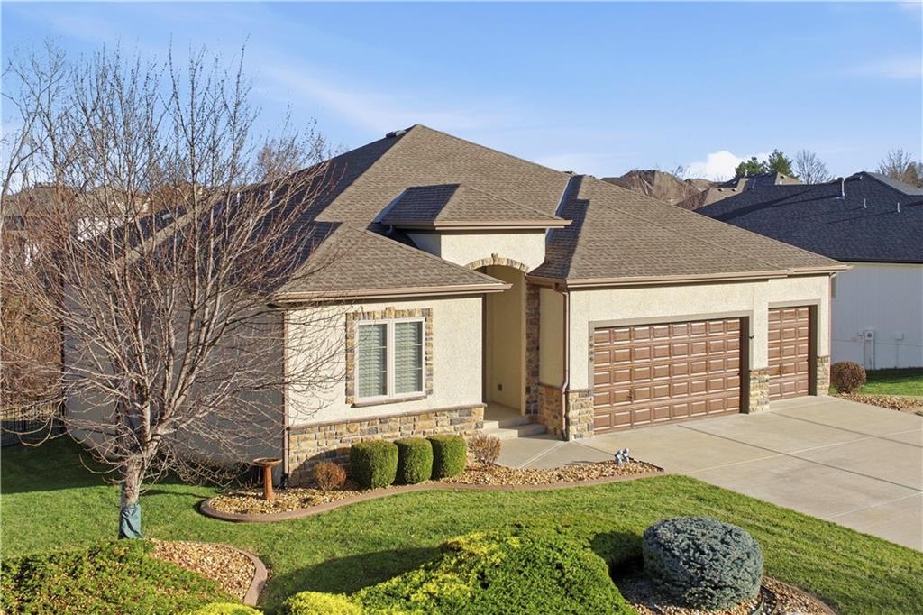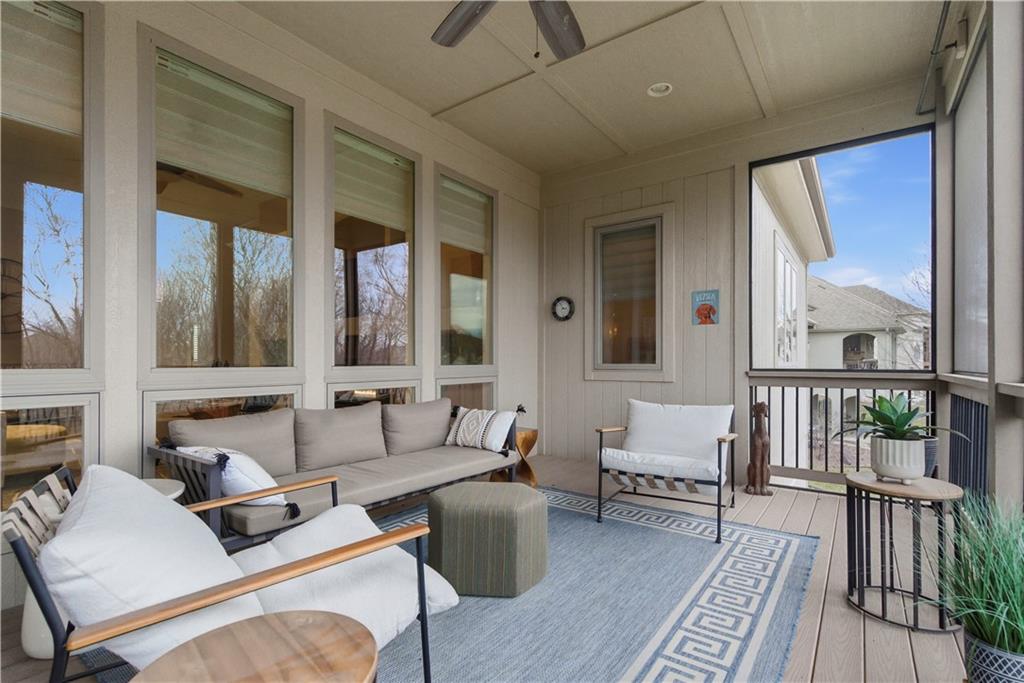 Gorgeous Reverse Story home with awesome Fenced Lot backing to Trees and Greenspace. The Beautiful Curb appeal with Newer Garage Doors will catch your eye with extra bonus of the Seller offering a New Roof by closing! Walk into Soaring Ceilings with a 14' Tall Entry and 12" Ceilings on the entire Main Level with a Wall of Windows to take in this picturesque lot. The Open Floorplan provides a Large Kitchen with Walk-in Pantry, Huge Island, Double Oven, Beautiful Cabinetry, Designer Lighting; which all opens directly to a Dining Area and massive Great Room with Custom Built-in Shelving. You will love the easy access to the Newer Screened in Deck just off the Kitchen which is complete with Stairs to the Fenced Yard. The Spacious Primary Room adjoins to a Primary Bath with Travertine Floors, Granite Counters, & Large Tiled Shower. The Main Floor is also home to a 2nd Bedroom and Full Bath. The Lower Level offers so much Space to Entertain with a Large Family Room with Fireplace, Billiards/Gaming Area, and a 2nd Kitchen/Bar with Built-ins, Tile Floors, Dishwasher and Sink. The 3rd Bedroom is arguably a 2nd Primary Room and the 4th non-conforming Bedroom gives the option of a 4th Bedroom. Storage is not a problem with a 17 x 13 Storage Room with Expoxy Floor! Here is your chance to be the owner of a beautiful Revere Story home on a Private Lot while enjoying all the amenities of the Popular Park Ridge Community which is home to a Clubhouse, Pools, Fitness Center,Trails, Tennis & Pickleball Courts,Playground, & Acres of Greenspace! * Note many items are for sale so view list with prices in supplements.