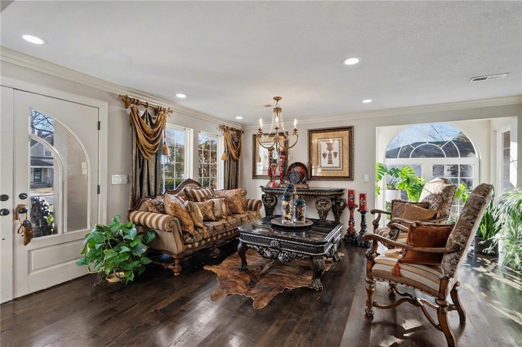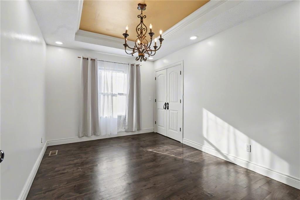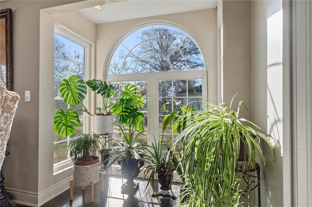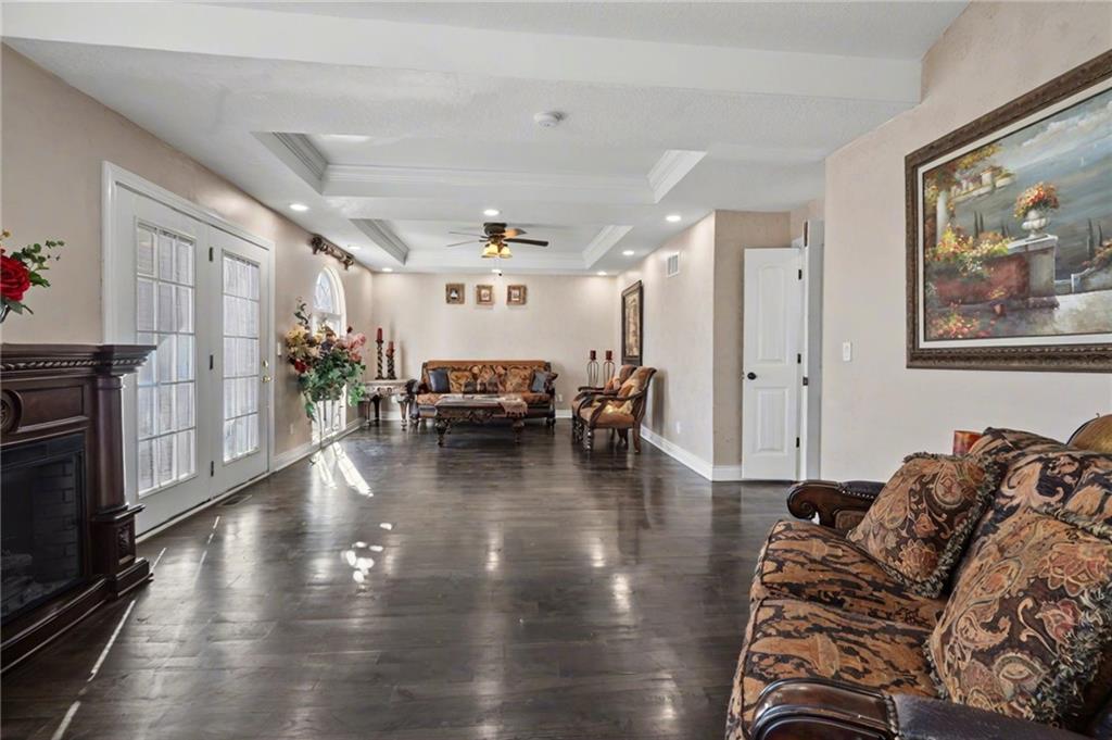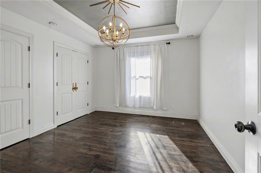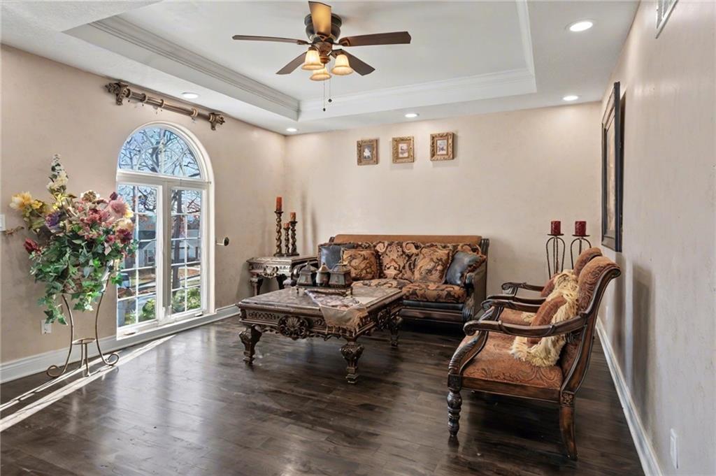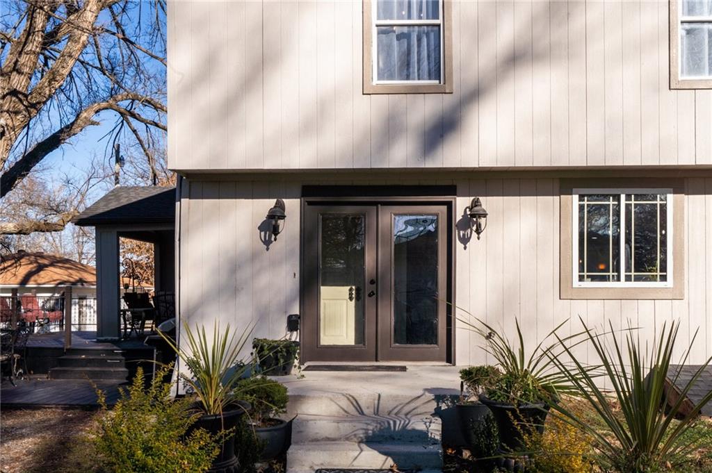 OPEN HOUSE SATURDAY 12/20 10:30-12. Welcome home to this exceptional and elegant 5 bedroom, 3 bath home in the heart of De Soto. This stunning home features 5 spacious bedrooms, 3 full bathrooms, an open floorplan with hardwood flooring, large windows allowing for an abundance of natural light throughout, plus so much more!! An added feature is the large detached 4 car garage with workshop, office and recreation room on almost 1/2 acre lot. As you step into the entryway you are greeted with tall ceilings, picture windows, and gleaming hardwoods. The beautiful living room has a South facing solarium for plant lovers or a sunny reading nook. The spacious kitchen has beautiful granite countertops and backsplash, 36” gas cooktop, a generous kitchen island for culinary space and seating for four, plus a pantry with pull-outs. The dining room and family room spaces are connected to the main area while also creating a cozy feeling with custom pillars and mouldings, creating a floorplan perfect for entertaining or large family gatherings. Full bath just steps from the main level bedroom that opens to the covered deck with fireplace and quiet yard. Upstairs features four more bedrooms with large closets, a hall bath and primary suite with double vanity, walk-in closet and tiled shower. The largest bedroom has a walk-in closet and balcony. After a long day, relax in the cozy backyard under the covered deck overlooking the fireplace and additional terraced decks. From the custom interior lighting, beautiful trim, windows and doors, to the exterior spaces, balcony, and large yard, this home has exceptional design details both inside and out! Just a short walk away from quaint downtown De Soto and near De Soto schools, the peaceful Lexington Lake Park, and within an easy commute to KC, Lawrence, & surrounding areas, this property has it all! No HOA is ideal for using the detached garage for business or hobbies.