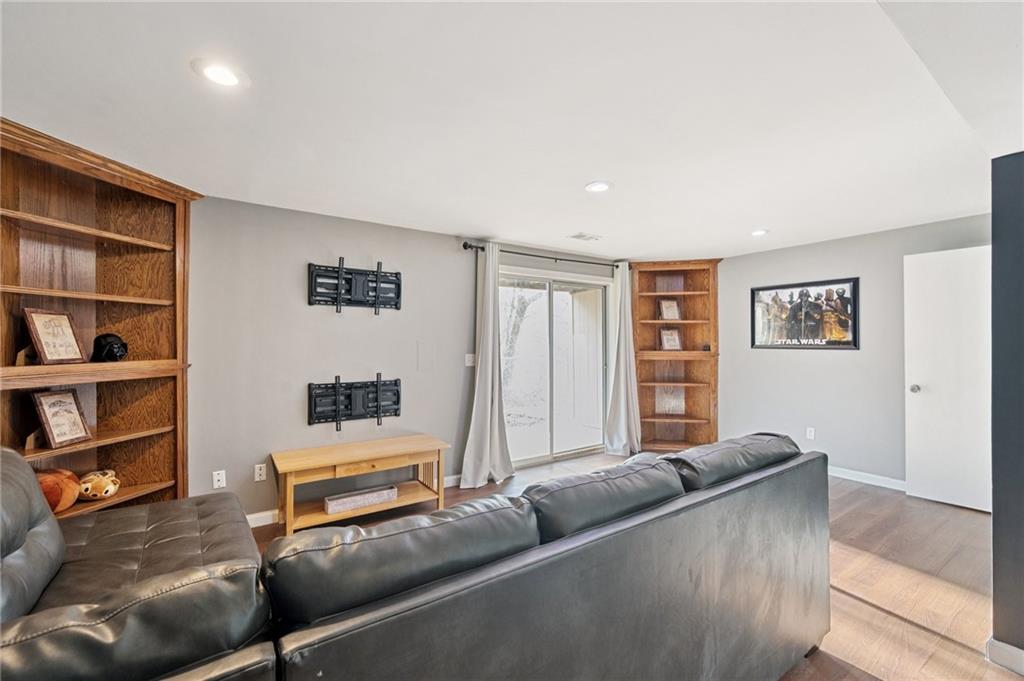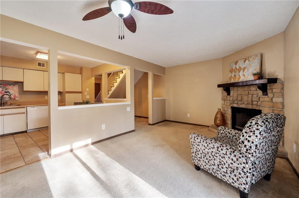 Welcome home to this well kept Townhome in Park Hill Schools. Home features an Open Concept from Living Room to Eat in Kitchen on the main level along with a corner fireplace and a walk out private deck to enjoy your morning coffee. Main level attached garage also makes grocery carry-in to the Kitchen a breeze. Upstairs enjoy 2 very large Bedrooms with double closets, ceiling fans and both w/attached Bath. Master bedroom also features a covered Martini deck. Lower level is finished and has Luxury Vinyl Flooring, built in corner cabinets, and a walks out to a nice patio facing the woods with a running creek behind for privacy and solitude. Back yard is fenced and has a nice built up raised garden. All appliances stay and most are new (see Seller's Disclosure). Location, location, location! Can't beat the easy access to I-29, KCI, Bus Lines, Grocery Shopping and Zona Rosa. Also walkable to Woodsmoke Park. Google Fiber available. Enjoy Homeownership of one of the few Townhomes in Woodsmoke moderately priced and with no HOA dues.