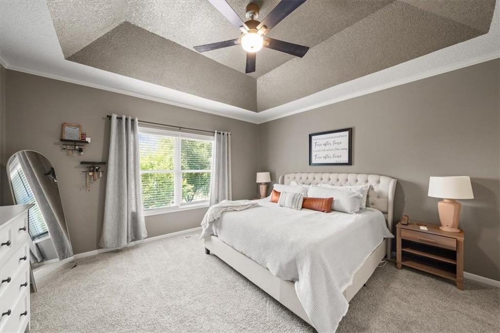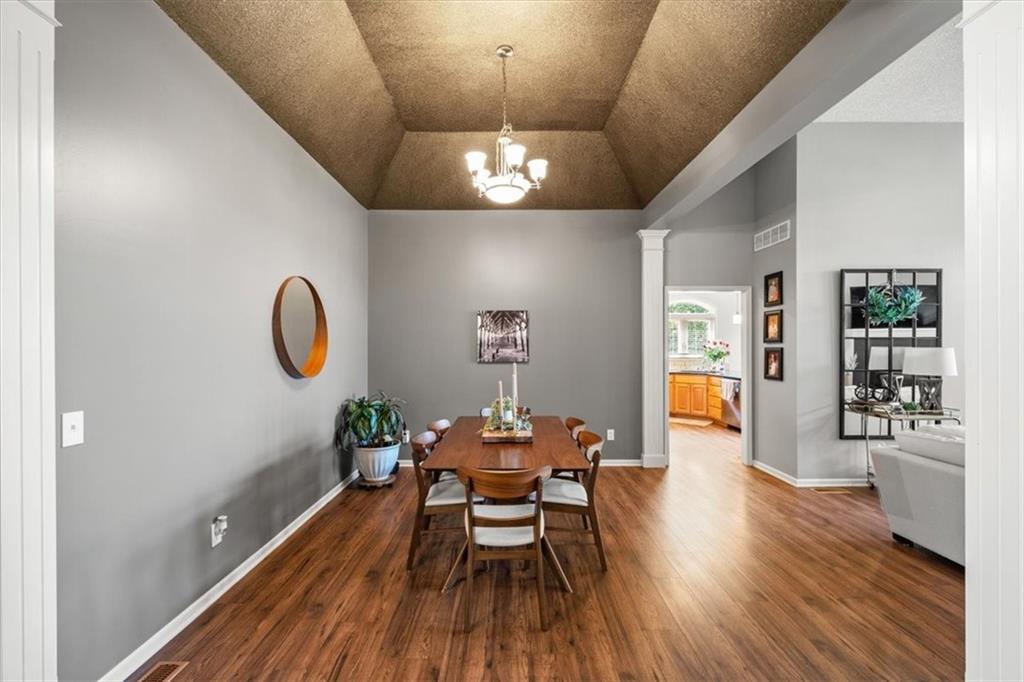 This stunning Reverse 1.5 Story home has been thoughtfully updated and is ready for its new owner. Fresh interior paint, a remodeled primary bath, and luxury vinyl plank flooring in the kitchen, dining, and living areas give the home a modern feel. Brand-new carpet runs throughout, and recent upgrades include a newer A/C unit, dishwasher, microwave, range, stair carpet, hot water heater, and updated lighting. The spacious primary suite features a generous walk-in closet, and the pride of ownership shines throughout every detail of this well-maintained home. Perfect for entertaining, the backyard offers an upper-level deck and a spacious lower-level patio—ideal for relaxing or hosting gatherings. The lower level also includes an oversized door leading to a large storage room, providing plenty of space and potential for future finish. Located in the desirable Lakes at Oakmont subdivision within the highly rated Platte County R-III School District, residents enjoy access to three scenic lakes and walking trails. This home truly has it all—come see it in person to appreciate everything it offers! Owner/Agent