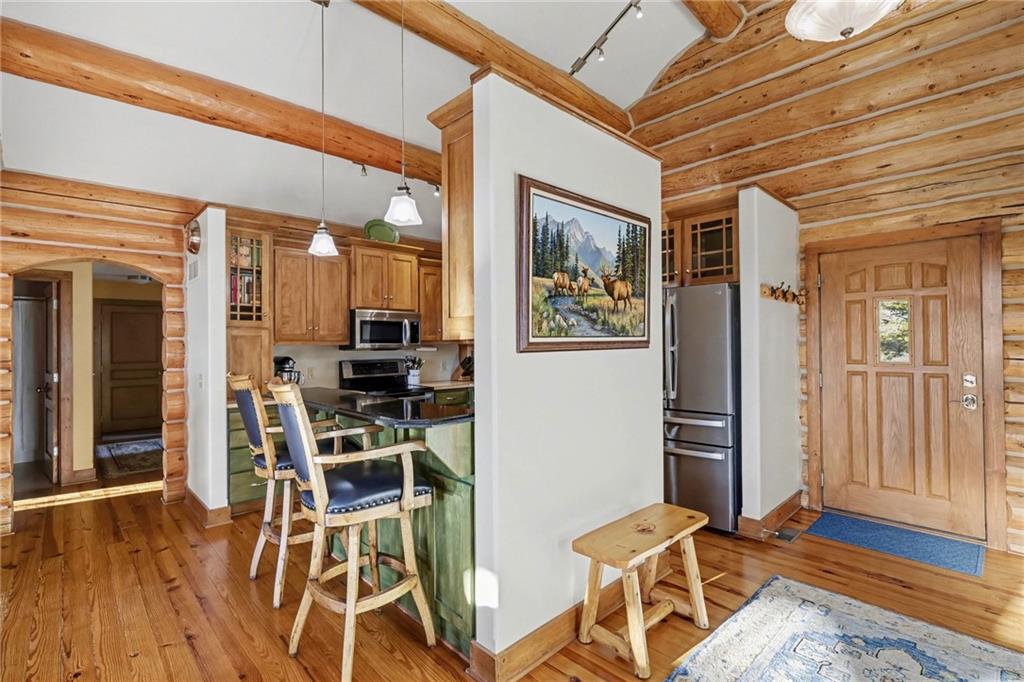 Tucked away on 23 breathtaking acres, this 3,162 sq. ft. Craftsman ranch–style custom log home offers a rare blend of thoughtful design, and unmatched natural surroundings. Built in 2003 and lovingly maintained by its original owners, the home showcases full-round log construction in the central living areas, featuring exposed log trusses, open doorways, and a striking Palladian-style arched picture window that fills the space with natural light. Covered front and back porches invite you to relax and take in the peaceful setting, while cedar-sided, stick-built wings balance beauty with functionality. The main level is designed for effortless living, offering a spacious kitchen, living and dining areas, a walk-in pantry, and custom cabinetry and built-ins throughout. The primary suite includes a full bathroom and a walk-in closet. Two additional bedrooms, a second full bath, multiple linen closets, and a convenient laundry/mudroom are also on this main level. The finished walkout basement expands the living space with a fourth bedroom, third full bathroom, open living/game room, bar, safe room, and abundant storage—including a large utility room and under-stair storage. Comfort and efficiency in the home are enhanced by central air, a heat pump with propane backup, a wood stove fireplace, a radon mitigation system, and high-speed fiber internet. Outdoors, the property is equally impressive with an attached extra deep two-car garage, concrete driveway and patio, 42’ x 64’ shop/barn with a 12-foot door, circular gravel drive, garden shed, raised garden beds, and a landscaped backyard bonfire ring. Crafted from dead-standing pine and fir timber sourced from Wyoming, this one-of-a-kind home is perfectly positioned on a paved, lightly traveled road just one mile from Smithville Lake’s Mecca Access and boat ramp—offering true country living without gravel roads. The acreage borders U.S. Corps of Engineers land along Smithville Lake, ensuring privacy and protected views.