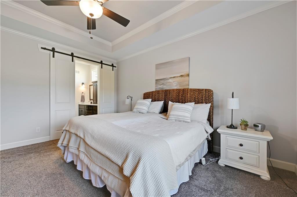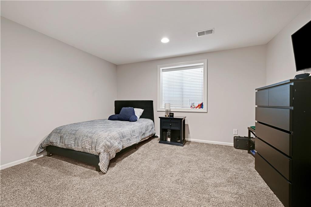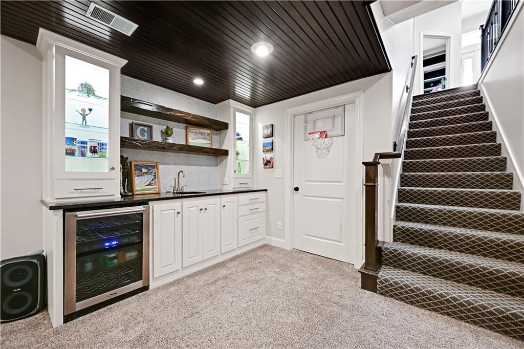 Welcome home to this Gabriel Homes Richmond floorplan free-standing villa in Cedar Creek – The Meadows, featuring new interior paint throughout much of the home. This low-maintenance stucco and stone exterior welcomes you with a deep covered front porch and upgraded leaded-glass front door. The main level offers mixed-width hardwood floors, a spacious office or 4th bedroom with built-ins, and a full bath with tiled shower and granite vanity. The kitchen shines with a large walk-in pantry, expanded island, granite countertops, custom painted cabinetry with under-cabinet lighting, and stainless appliances including a KitchenAid induction cooktop and Bosch oven and dishwasher. The adjoining living room features a stacked-stone gas fireplace. The main-floor primary suite includes a tray ceiling, a huge walk-in closet connected to the laundry room, and a spa-like bath with double quartz vanity and tiled walk-in shower. The finished basement offers a wet bar, large living area, two generous bedrooms, and a full bath. Enjoy a private backyard backing to a school with a covered patio, expanded paver patio, and lush perennial landscaping. Deep painted garage is EV-wired. HOA includes lawn care and snow removal. Resort-style Cedar Creek amenities include pools, pickleball, trails, lake, gym, clubhouse, and more—an exceptional value.