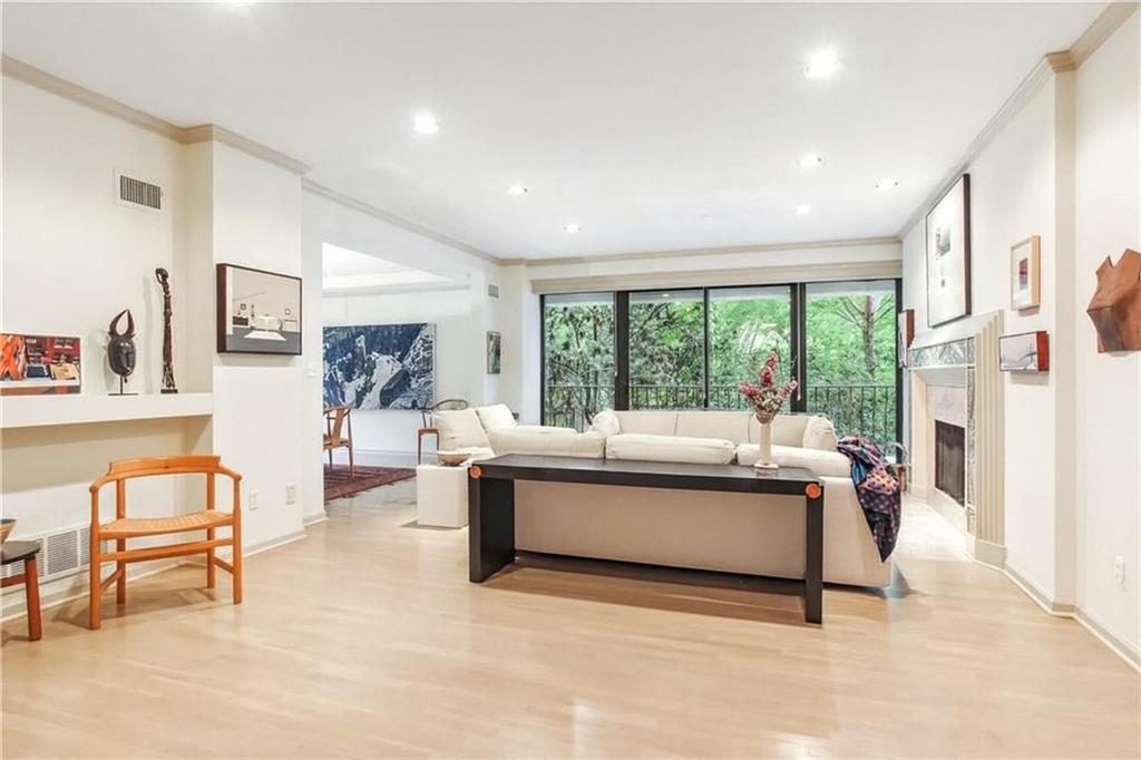 Plaza Living with Modern Flair & Treehouse Feels - Skip the elevator, this rare first-floor condo (just one floor above the lobby!) brings all the style without the hassle - modern meets cool, with a fabulous fireplace that sets the vibe - feel like you?re living in the trees thanks to the lush views from almost every window overlooking the pool & patio -the oversized covered terrace connects the living room & second en suite - perfect for morning lattes or late-night chats - the living room is open to the large formal dining room - it?s open & airy with hardwood floors, built-ins galore & a separate family room with more built-ins that's open to the kitchen that?s ready for cooking, chatting & casual dining with much counter space - need a desk - it?s already built in - the primary spacious suite offers relaxation with a cozy nook with Plaza views, 2 walk-in custom closets, a full bath with a soaking tub, large shower, double vanities with counter space for everything - Surprise for condo living! - a large laundry room with real storage space (yes, even for your Costco haul) - two secure garage spots keep things easy & safe - this boutique building is packed with perks: outstanding 24/7 concierge service, a pool, gym, party room overlooking the Plaza, catering kitchen & a rentable guest suite -HOA dues are $2,396.93 for everyday stuff & $797.35 goes to the reserve fund - eliminating any awkward surprise special assessments, keeps it easy for budgeting.