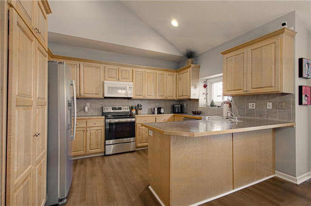 Welcome to a truly one-of-a-kind home that instantly feels warm, open, and inviting. As you step inside, soaring ceilings and a flowing open floor plan create a light-filled space that’s perfect for both everyday living and memorable gatherings. The front windows frame stunning Downtown skyline views and deliver some of the most beautiful sunsets you’ll enjoy from the comfort of your own living room. With two spacious living areas, there’s room to relax, unwind, or entertain with ease. The vaulted living room sets the tone, while the second family room offers a cozy fireplace with built in bookshelves and plenty of natural daylight, ideal for quiet evenings snuggling up with a book. The kitchen is both functional and welcoming, featuring abundant cabinetry and a sunny breakfast nook where mornings feel easy and unhurried. The generous primary suite is a peaceful retreat with a huge walk-in closet and a private bath complete with a jetted tub and separate shower while the other 2 Bedrooms have direct bathroom access to the Jack-n-Jill bathroom. Downstairs, a 28x18 finishable sub-basement space offers endless possibilities, while the garage which could double as an indoor basketball court with 14-foot ceilings, adds a fun and unique touch you won’t find anywhere else. The spacious backyard provides a great spot for pets, play or outdoor relaxation with the newly constructed privacy fence. Ideally located with quick access to I-435 and I-35, this home blends comfort, character, and convenience in a way that’s truly special. HOMEBUYER SPECIAL: Sellers are offering new carpet to be installed prior to closing; carpet samples are available at the home for buyer selection.