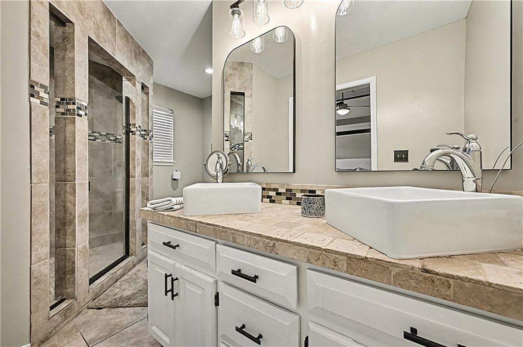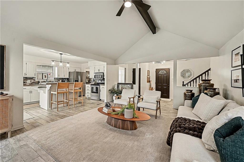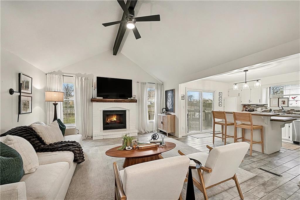 - Fresh. Stylish. Move-in Ready. This 3-bedroom, 2½-bath home delivers the clean, crisp finishes today’s buyers love. Thoughtfully maintained and filled with natural light, the open main living area features vaulted ceiling, durable tile flooring, and a striking gas fireplace that flows seamlessly into the updated kitchen. You’ll love the stainless steel appliances, concrete countertops, and generous breakfast bar/island—perfect for everyday living or hosting friends. Step outside from the kitchen to a deck and patio overlooking a large, level, fully fenced backyard—ideal for grilling, entertaining, or letting pets roam freely. The primary suite offers two closets and a beautifully updated en-suite bath with a tiled walk-in shower with bench & double vanity with vessel sinks. Two additional bedrooms, an updated full bath, and convenient laundry complete the 2nd level. The finished lower level adds even more flexible living space with a large rec room—perfect for a home office, playroom, gym, or game-day hangout—plus a stylish wet bar with tile countertops, beverage fridge, and a half bath. A spacious two-car garage with built-in shelving adds great storage, and major updates include a newer roof, garage doors, interior paint, light fixtures, primary bath mirrors, & fireplace mantel. Located close to shopping, dining, and award-winning Blue Springs schools, including Blue Springs High School, with Lucy Franklin Elementary and Brittany Hills Middle School just a short walk away. A fresh, crisp, charming home in a prime location—this one checks all the boxes.