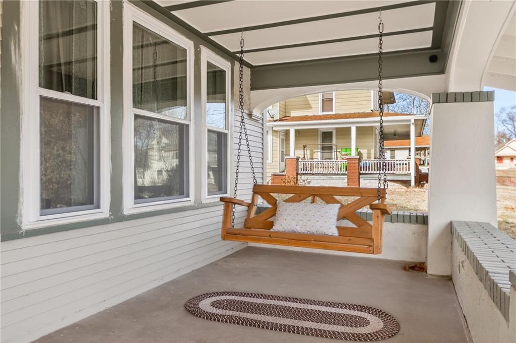 This is the kind of home that immediately feels welcoming, the kind that invites you to slow down and imagine everyday life unfolding comfortably within its walls. Built in 1922, this beautifully maintained residence blends timeless craftsmanship with thoughtful updates that make modern living easy. The front porch sets the tone, offering a perfect place for morning coffee or evening conversation. Inside, natural light fills the main living spaces, highlighting original details and warm finishes that give the home its character. The living room centers around a fireplace that anchors the space, creating a cozy gathering spot for family and friends. The kitchen is spacious and functional, offering generous counter space, classic cabinetry, and room to truly cook and connect. Adjacent dining and gathering areas flow naturally, making everyday living and entertaining feel effortless. With three bedrooms, including a main-floor primary, the layout offers flexibility for families, guests, or home office needs. The partial finished basement adds valuable bonus space, ideal for a family room, game room, or quiet retreat, along with an additional office or non-conforming bedroom option. Outdoor living is just as inviting, with a covered porch and side deck creating multiple spaces to relax or entertain. A detached two-car garage adds convenience while preserving the home’s charm. Located just minutes from Benedictine College and downtown Atchison, this home offers character, comfort, and walkable access to local dining, shopping, and campus life. It’s a home best appreciated in person, where its warmth and livability truly come to life.