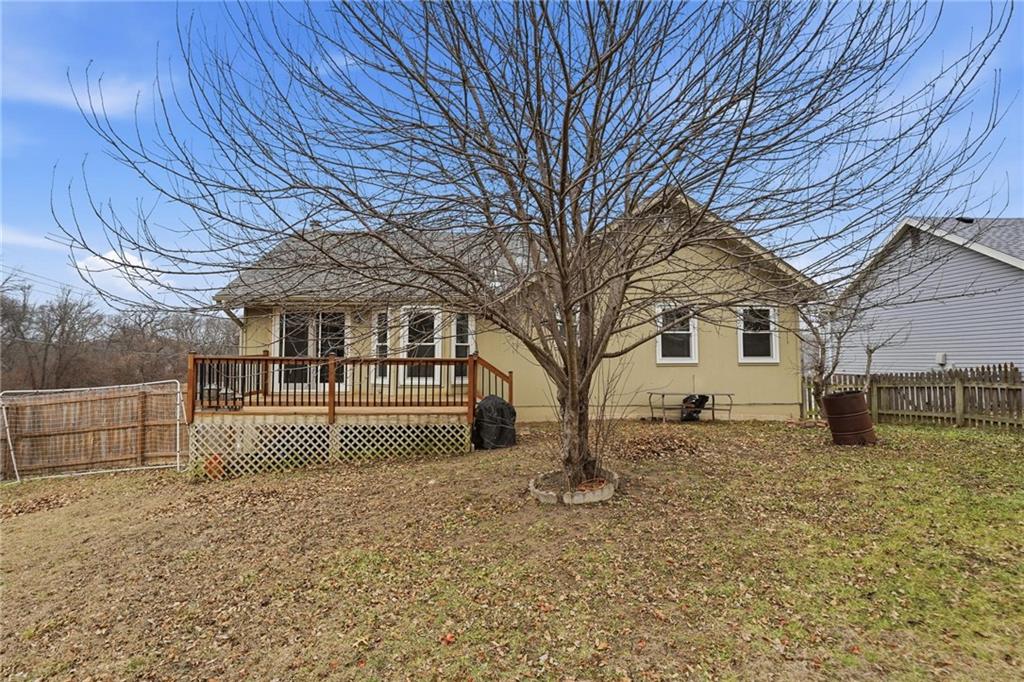Beautiful home in neighborhood with small community vibes, this 3-bedroom, 2.5-bath split level home is ready for new owners. Open feel to the family room with vaulted ceiling and gas starter fireplace. Kitchen and dining rooms are graced with several floor to ceiling windows, and again high ceilings. Deck off the dining area leads to a level backyard for gardens, games, and more. Fully fenced! Finished basement and half bath in basement. New paint outside as well! Seller OFFERING $4K in carpet allowance!! Perfect location to Kansas City via major highways, and just a short jaunt to Liberty.