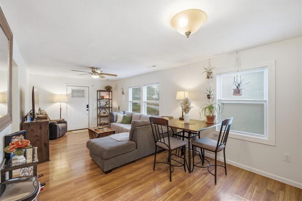 Tax abatement already in place per county records (buyer to verify) adds meaningful long-term value to this move-in-ready 3-bedroom home. Fresh interior paint and a bright, open living and dining layout create a clean, comfortable feel that lives efficiently without wasted space. The kitchen offers stainless steel appliances, ample cabinet storage, and room for everyday dining. All bedrooms are located down the hall for privacy, with convenient main-level laundry and a centrally located full bath. Natural light and hardwood-style flooring run throughout, giving the home a cohesive, low-maintenance feel. Outside, the detached garage provides excellent storage or workshop potential, along with a manageable yard and additional basement storage with cellar-style access. With quick highway access and a practical layout designed for everyday living, this home is a strong option for owner-occupants or buyers seeking simplicity, functionality, and long-term value.