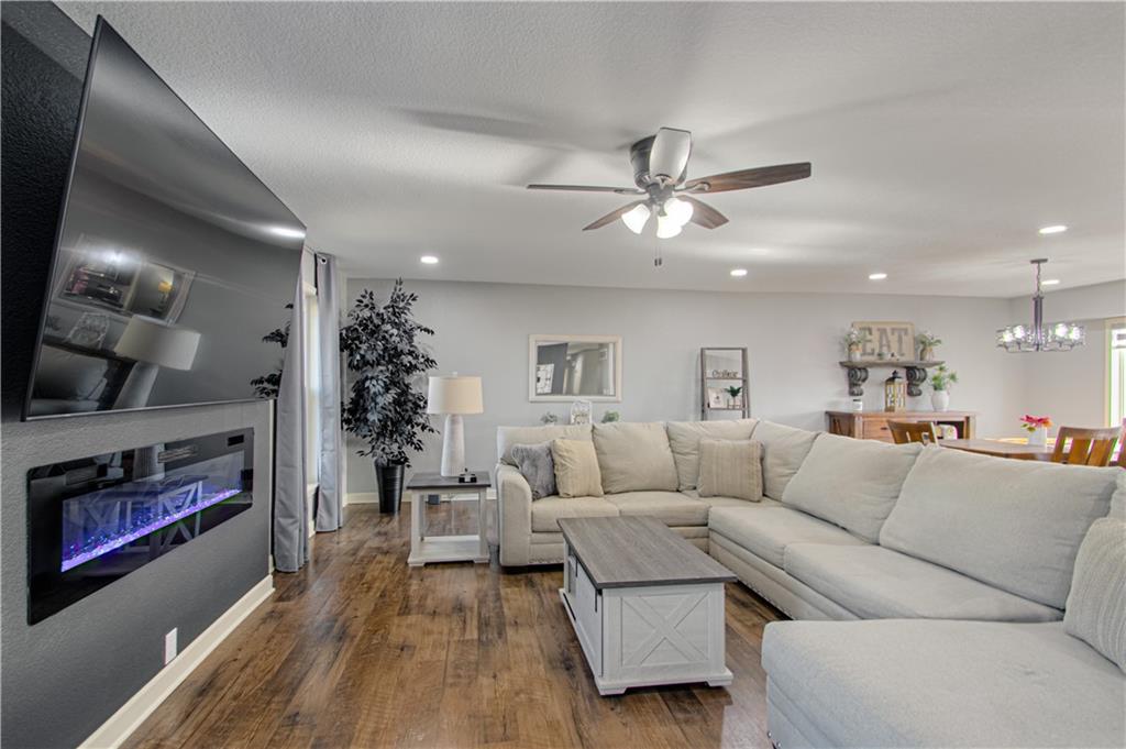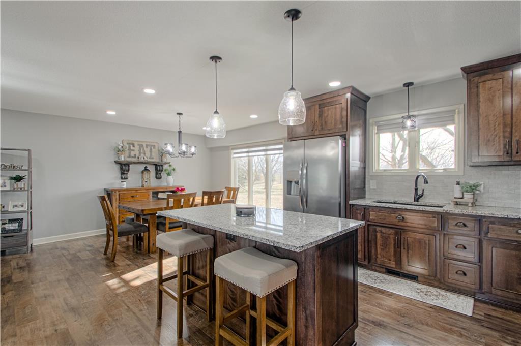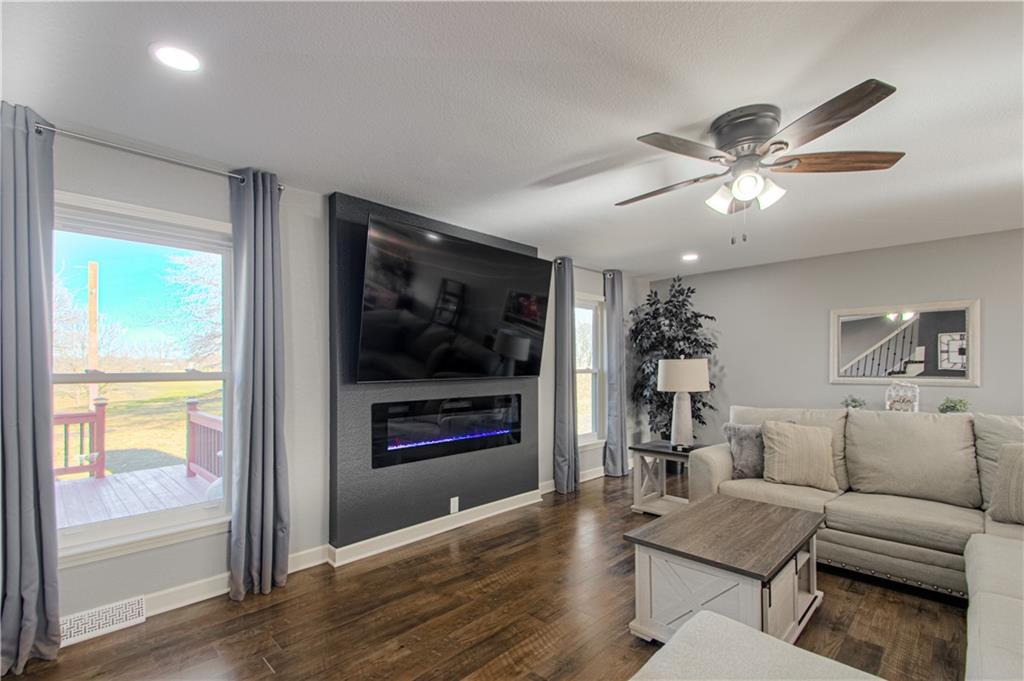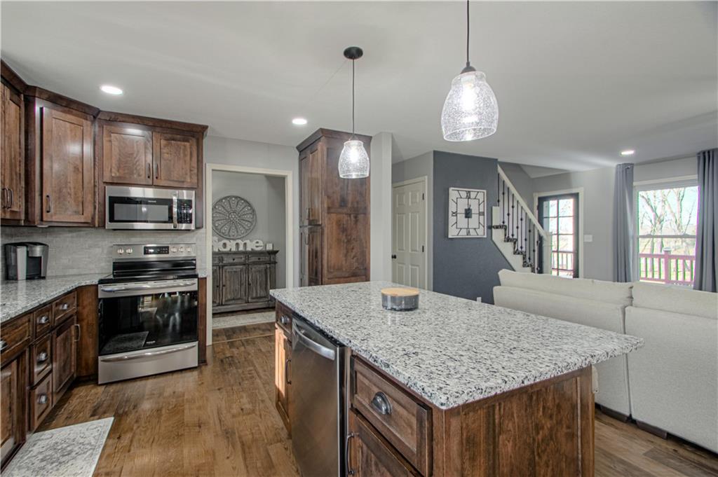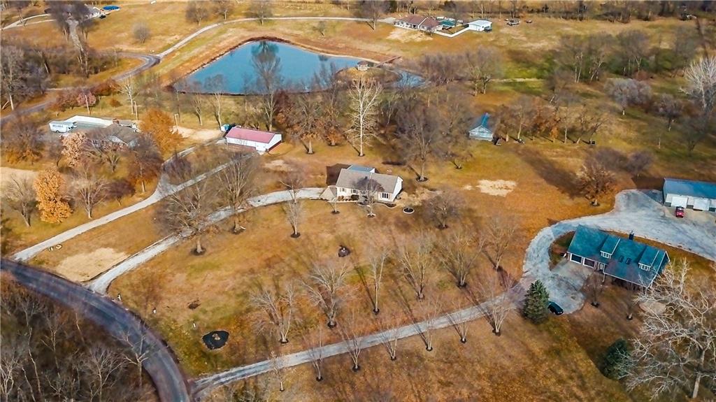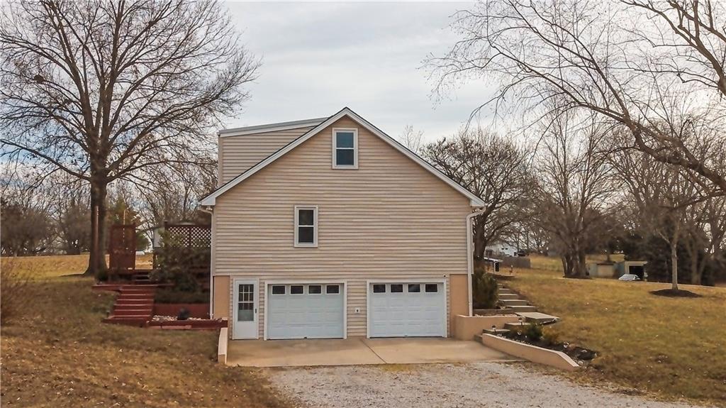 This home is impeccable! The owners have taken great care of it, remodeling the great room and kitchen with new cabinets, flooring, appliances, and an electric fireplace. The majority of the windows are newer, and the home has fresh paint and beautiful landscaping. The property itself is stunning, featuring an impressive two-level barn that measures 28x32 feet, surrounded by views of pecan, walnut, apple and oak trees. You can relax on the newly treated deck and enjoy watching the wildlife. The roof and heat pump are both under 10 years old. The side-entry garage is spacious, with one stall measuring 32 feet wide by 27 feet deep, and a second stall that is 24 feet deep. Dogwood Elementary and Kearney High School serve the home. Additionally, it's conveniently located near the Kearney Jesse James Fairground. Please note that the square footage, taxes, and other information should be verified by the buyer's agent.
