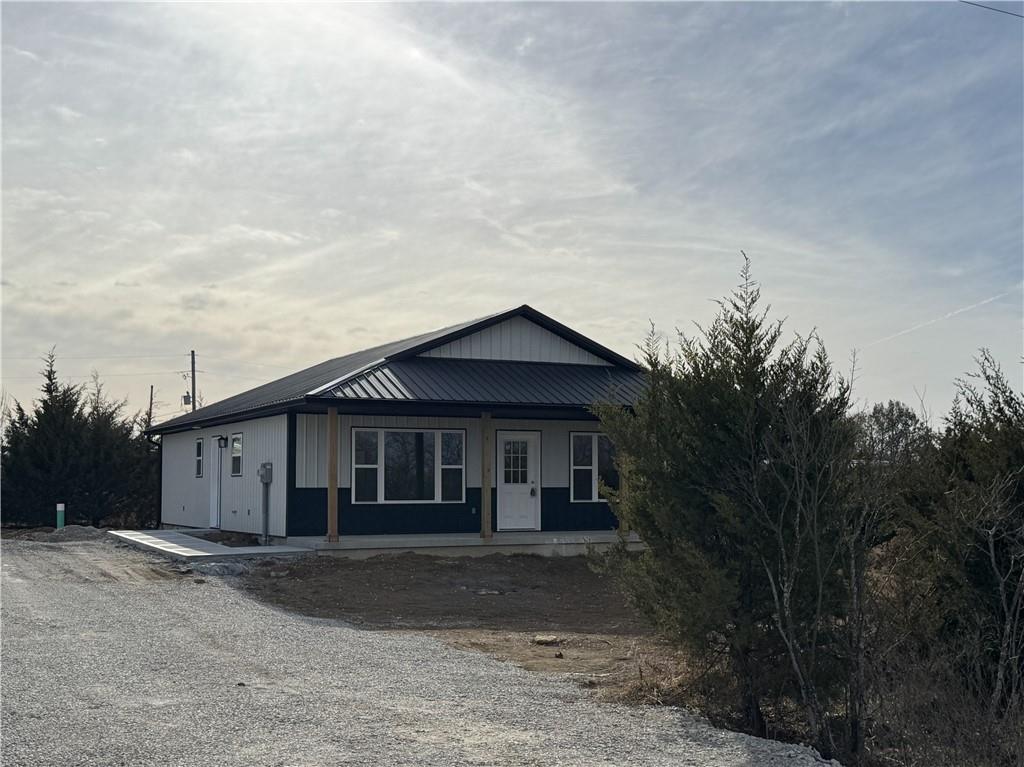 Here is your opportunity to own a new home in the gated community of Linn Valley Lakes. This home is solid. It is well built, has metal siding, a metal roof and a solid concrete slab foundation. For your convenience and safety, there is a small cellar area where you can access the water lines and and it can be used as a safe room if storms are near. The covered front porch extends the entire width of the home and it is a great place to kick back and listen to the sounds of nature. The main living area is an open concept floor plan where the kitchen and family room combine to create a light and bright place to eat and relax. The primary bedroom has a private bath and a walk in closet. Contemporary colors have been used with the wall colors, the tile and the flooring. Stainless steel kitchen appliances are in place and will stay. The location is on a quiet road on the northern edge of Linn Valley, with open farm land right across the street. If you are looking for a home in Linn Valley, please come and see this one. You will not be disappointed!