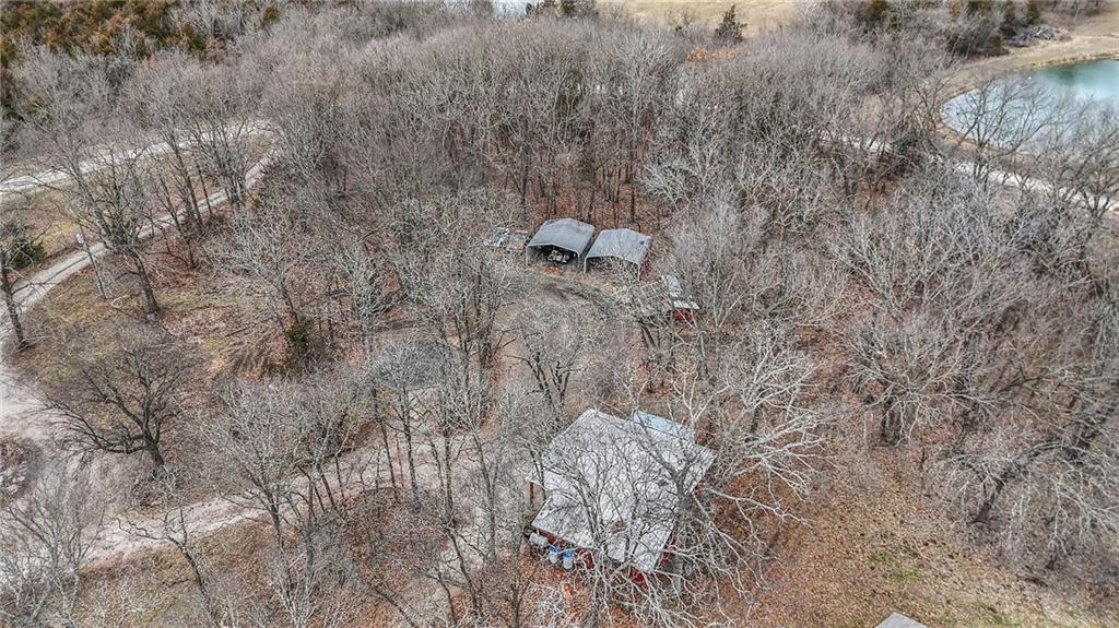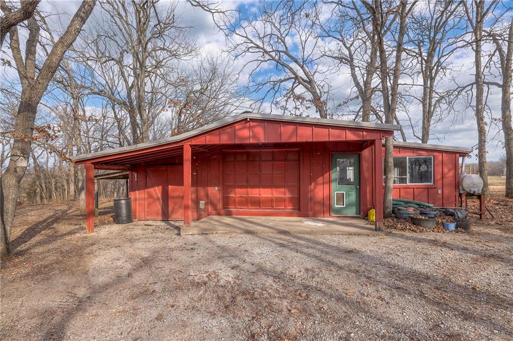 Discover an incredible opportunity to own a beautiful 23-acre hobby farm, with picturesque wooded areas and rolling pastures—ideal for outdoor enthusiasts, hunters, and anyone dreaming of country living! This unique property features a spacious 2,046 sq ft main home, freshly painted on the exterior and topped with a brand-new roof prior to closing for peace of mind. A welcoming covered porch invites you to relax and enjoy panoramic views of nature, while inside, the large kitchen boasts a gas and electric cooktop, refrigerator, two sinks and an island for gatherings. The master suite is thoughtfully designed to be wheelchair-friendly, with a spacious walk-in shower for comfort and accessibility. The main living room has soaring vaulted ceilings and expansive windows for great views outside to see the deer in the yard. Retreat upstairs to a cozy bedroom featuring a fireplace, built-in safe, and your own private covered balcony—the perfect spot for quiet mornings with coffee. Plus a 4th non conforming bedroom. For your guests or multigenerational living or a business office, the secondary living quarters (491 sq ft) comes complete with its own driveway for privacy and convenience. Enjoy the ultimate rural lifestyle with an outbuilding with a wood-burning stove, chicken coop, two carports, a pond, raised garden beds, garden shed, patio with fire pit, storm shelter, and an orchard. Additional highlights include three driveways, an average hay yield of 56 bales per year, and plenty of room for tree farm, nursery, gardening, livestock or future expansion. Nestled in a tranquil country setting, this property offers something for everyone. Please note: a manufactured home currently on site will be removed in January and is not included in the sale.