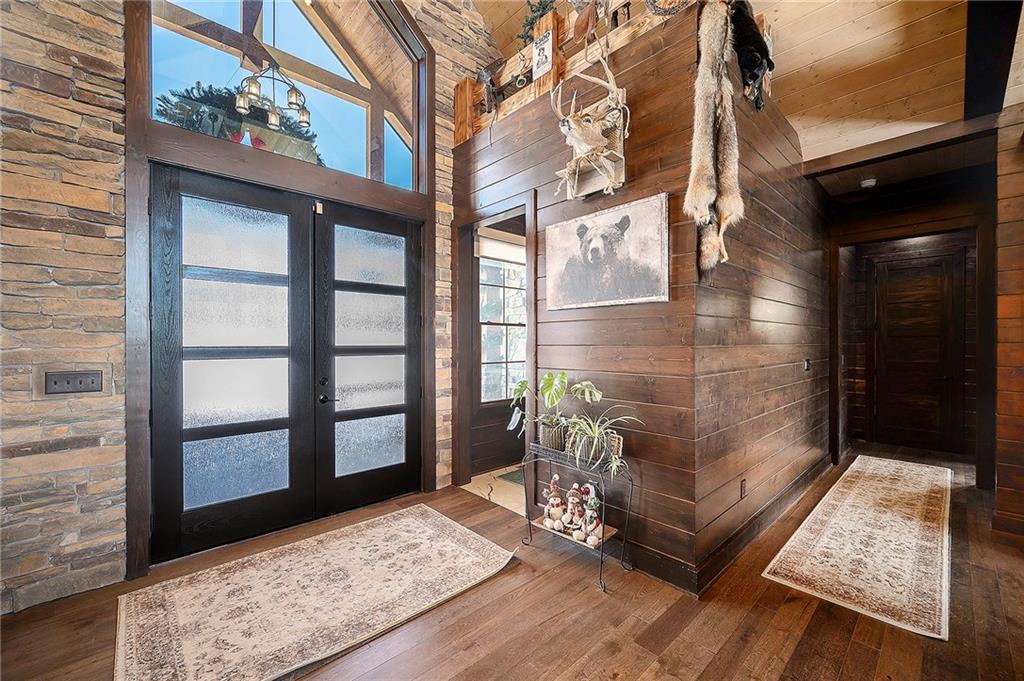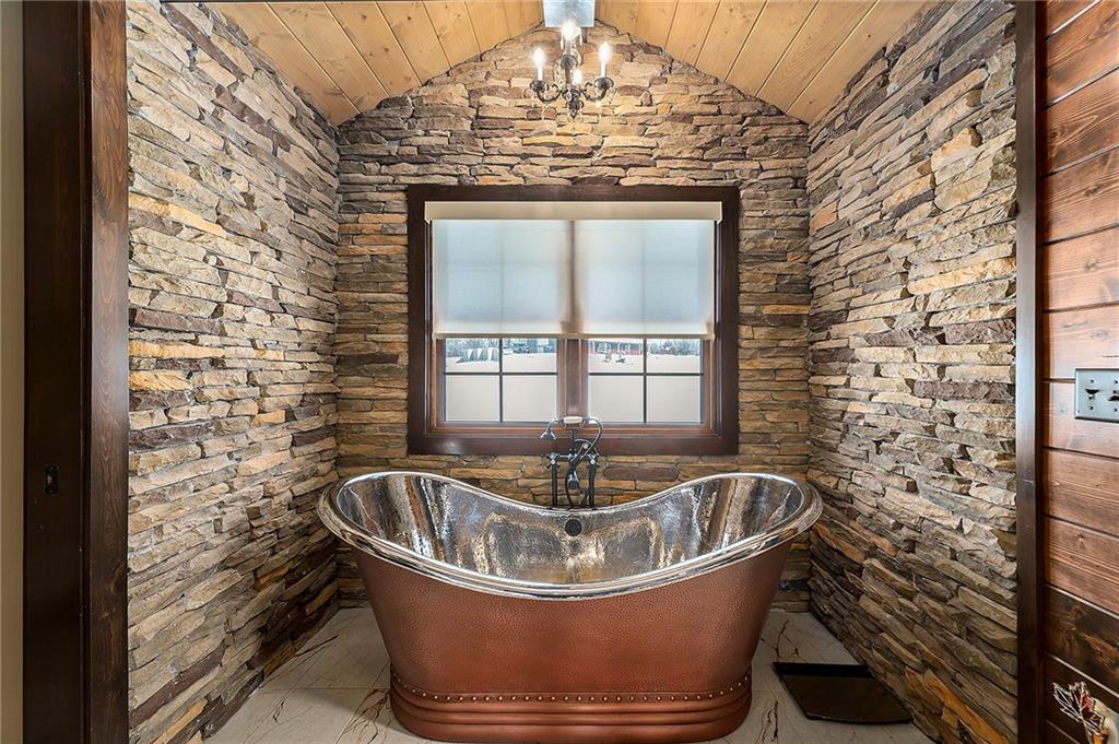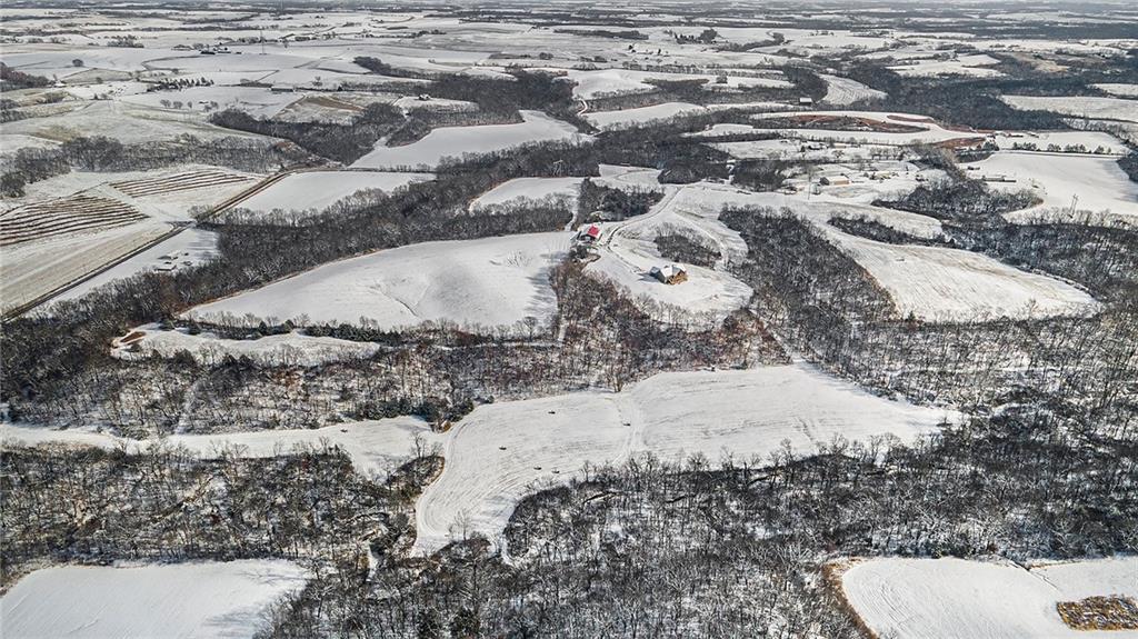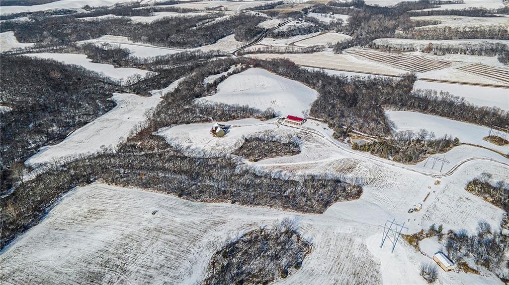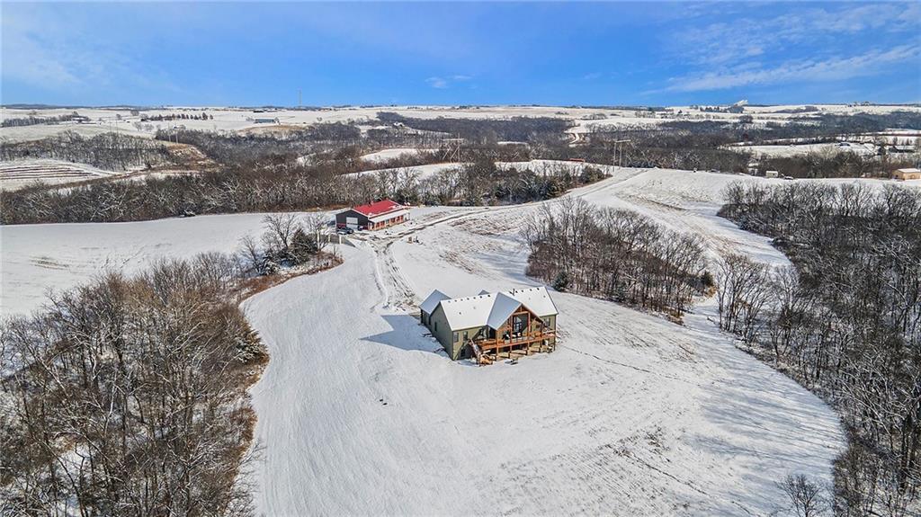 Exceptional custom-built, lodge-inspired home situated on approximately 60± scenic acres, offering privacy, panoramic views, and quality craftsmanship throughout. The home features a striking great room with vaulted ceilings, exposed timber beams, tongue-and-groove pine walls and ceilings, and a floor-to-ceiling stone fireplace with custom built-ins. The kitchen is thoughtfully designed with high-end stainless steel appliances, custom cabinetry, and generous workspace. The primary suite offers a private retreat with a spa-like bath featuring a copper claw-foot soaking tub. Warm wood tones, stone accents, and expansive windows create a seamless connection to the surrounding landscape. Outdoor living includes a covered deck and patio overlooking rolling terrain and timber. The property includes two outbuildings and a mix of open ground and wooded acreage, ideal for hunting, recreation, and nature enjoyment.