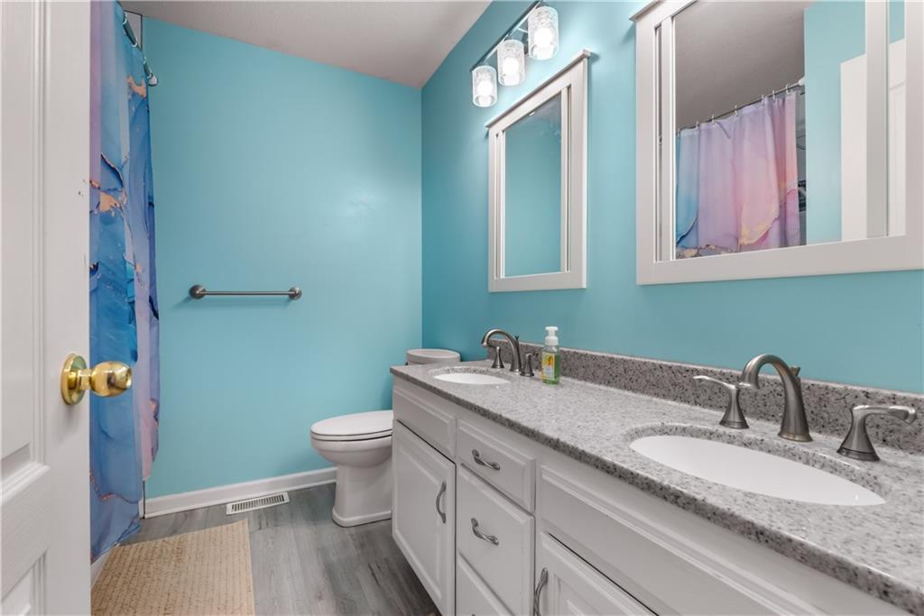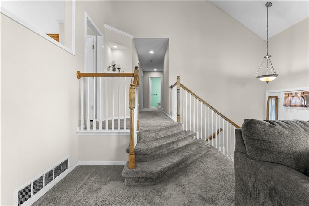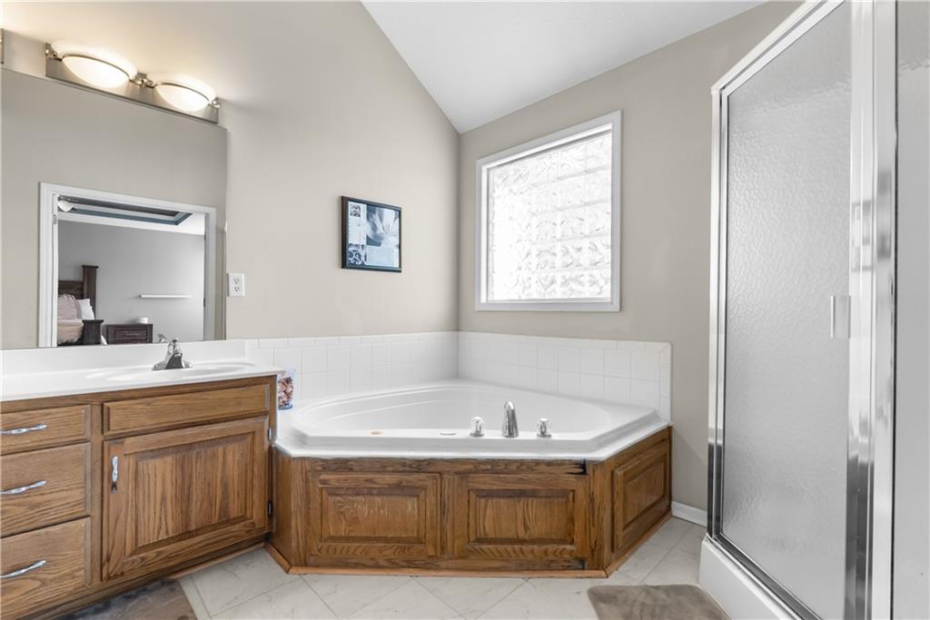 Beautiful 4 bedroom home with 3 car garage in Eagle Creek subdivision. Neighborhood includes extensive walking trails, play areas and swimming pool! Main floor family room with fireplace and vaulted ceilings. Open kitchen with breakfast bar and stainless appliances. formal dining room. Main level has 3 bedrooms. Main level master features vaulted ceiling, double vanity, walk in closet and jetted tub. Finished walk out basement has 4th bedroom and spacious family room. Sub basement is also finished. Private fenced yard backs to common area and trees Roof is 3 years old
