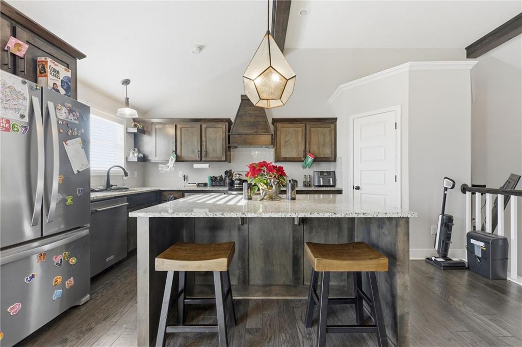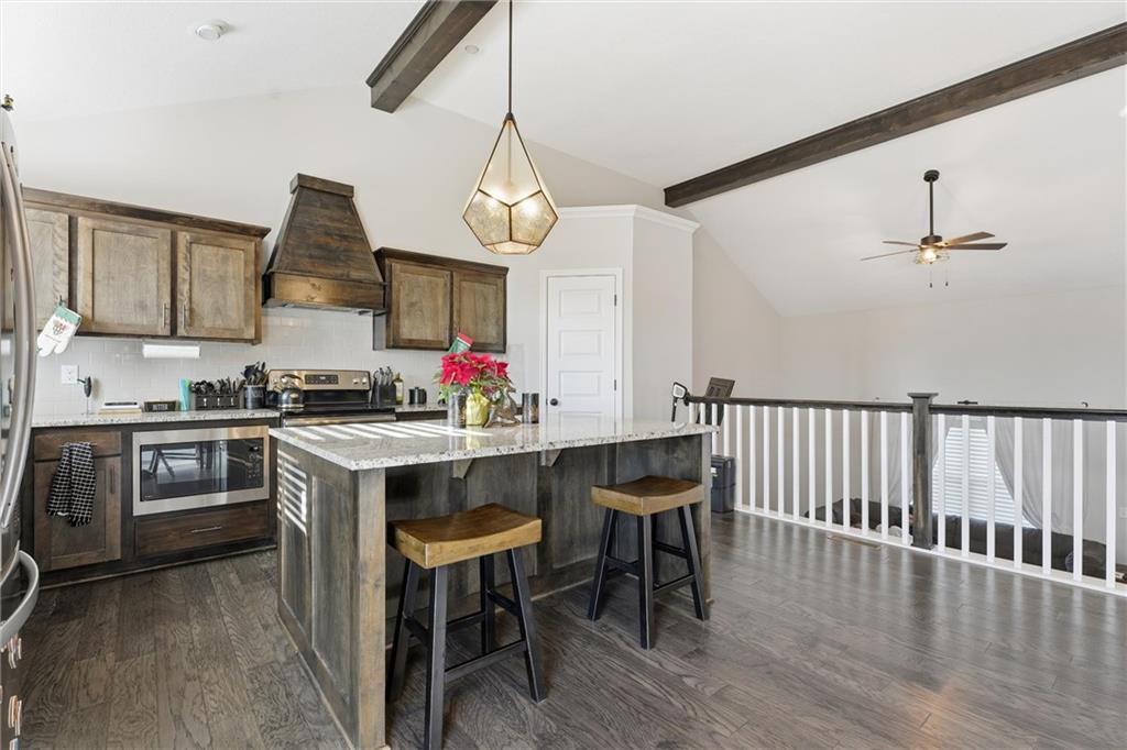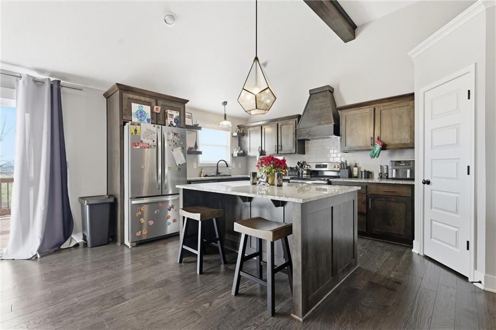 Welcome home to this, like new, 4-bedroom, 3-bathroom front-to-back split. From the charming front porch to the vaulted living room accented by rustic wood beams and a cozy fireplace, every detail impresses. The heart of the home features a chef’s kitchen with granite countertops, stainless appliances, and a walk-in pantry. Retreat to the primary suite, a private oasis complete with wood-beamed ceilings, a soaker tub, and a spacious walk-in closet. The walk-out lower levels offer a bright finished basement, a full bath, and a private 4th bedroom. Outside, the new patio and custom fire pit overlook a fenced backyard—perfect for entertaining. Schedule your showing today for this move in ready home!