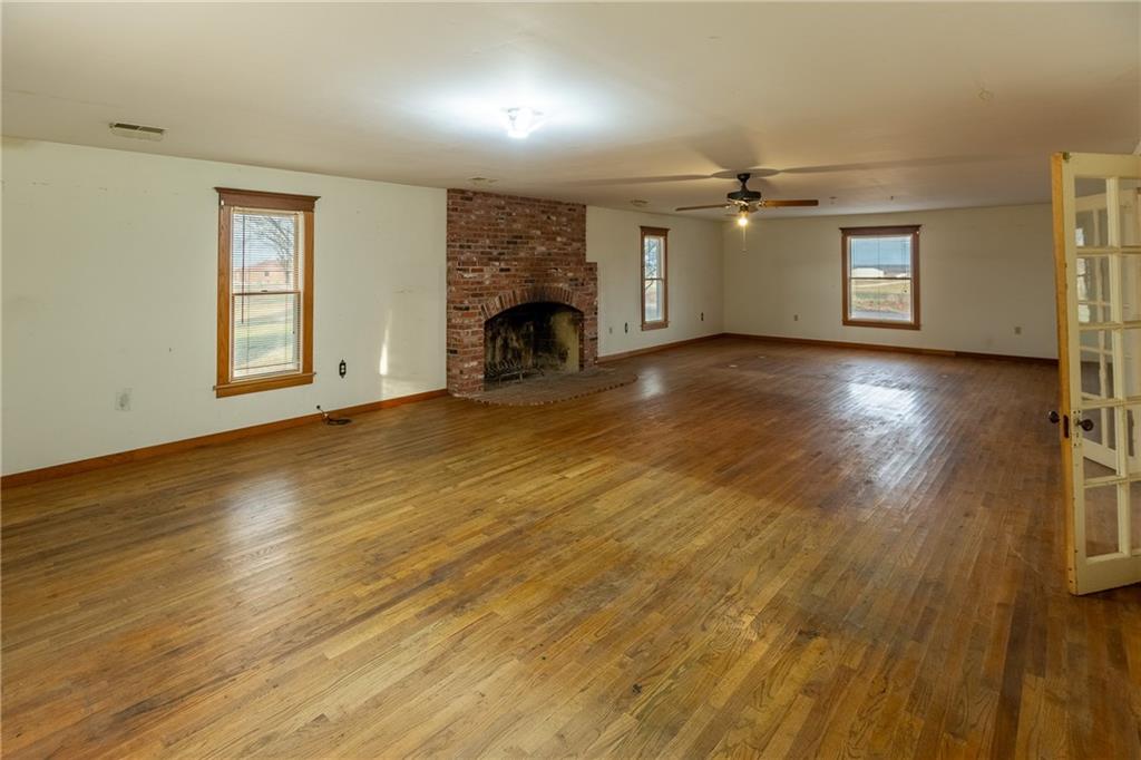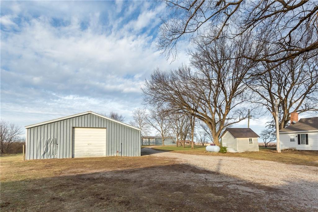 Located just one mile east of MO-58 and the town of Centerview, this 2.5 +/- acre property in Johnson County, Missouri, offers a combination of history, space, and shop infrastructure. The main residence is a 3,780 +/- square foot home originally built in the late 1800s, with major updates including a remodel in 1967 and an addition completed in 1990. The home features two beautiful brick fireplaces, original vintage trim, and a layout that provides substantial square footage for a full restoration or remodel. A new roof was installed in 2020. The home is connected to rural water, includes a sump pump, a newer sewer line installed in 2010, central air conditioning, and propane-fueled heat. The 2+ acre lot includes mature oak, walnut, and elm trees as well as pecan and peach trees in the yard, which offer privacy and a classic country feel. For buyers wanting to build new, the acreage and utilities provide an excellent homesite. The improvements on this property are what truly set it apart. The west shop offers approximately 4,000 square feet on the main level plus an upstairs area, featuring steel construction, insulation, an elevator hoist, and full utility connections, including electric, water, and a bathroom. The north “diesel” shop provides an additional 3,000 square feet with steel construction, insulation, an office area, plumbing, 110V and 240V power, three oversized bay doors, and a dump pit—making it ideal for a business, mechanical operation, or serious hobbyist. Additional improvements include two smaller grain bins suitable for storage or conversion into popular “binzebo” structures, a two-bay garage with concrete floors and functioning doors, and a small smokehouse-style building currently used for storage. This is a unique opportunity for someone looking to combine residential living with shop space, storage, and the ability to operate a business, all in a highly accessible Johnson County location.