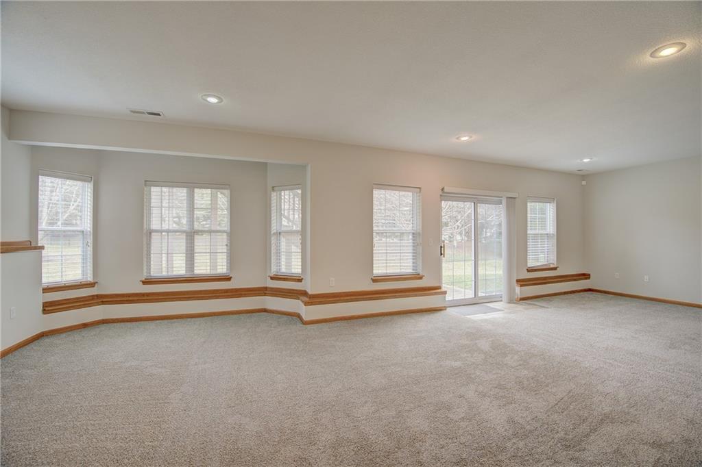 Meticulously maintained and move in ready! True ranch with 3 bedrooms on the main level in sought-after Drumm Farm Villas! NEW furnace and AC! Fresh interior paint and new carpet throughout! Enjoy the largest fully fenced yard in the neighborhood! Kitchen offers double oven, stainless appliances, walk in pantry and breakfast bar. Dining area opens to the Great room with gas fireplace and access to the deck overlooking the fenced backyard with inground sprinkler system-perfect for relaxing and entertaining! Primary bedroom suite includes a walk in closet and private bath with double vanity, jetted tub and shower. Two additional bedrooms, 2nd full bath with tub/shower and laundry are also on the main level. Finished, walk out lower level includes spacious family room with wall of windows, 3rd full bath and ample storage! Located in a maintenance-provided community, HOA dues cover lawn care, snow removal, opening/closing of sprinkler system and trash service—offering low-maintenance living at its finest. The Drumm Farms public golf course is also just down the road!