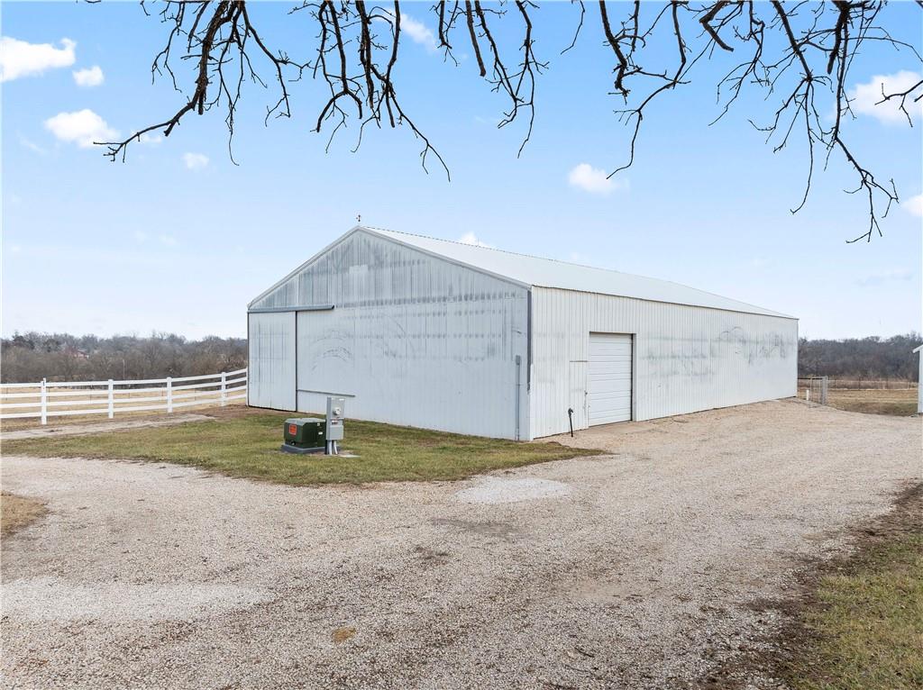 This charming 5 acre mini farm offers the perfect blend of country living and modern updates. Perimeter fenced with well laid out fenced pen areas and pasture area. This property is ready for livestock, garden or just enjoying wide open spaces. well maintained 78x66 barn w/ new100 amp panel + 54x48 outbldg w/new 200 amp panel and roof. The house boasts over 1200 sq ft of living space on main floor w/2 bedrooms and full bath. Plus approx 300 upper level sq footage - used for additional bedroom + full bath heated and cooled by mini split. Tons of recent upgrades including flooring, cabinets, windows and more as well as many mechanical improvements including plumbing, septic, electrical and generator. Newer roof and gutter. Nice usable floor plan with living room plus additional room off kitchen for dining or family area. Laundry in breezeway leads to 2 car garage. All appliances stay including W/D. Foundation has been evaluated by structural engineer and seller will escrow for needed bracing piers and epoxy to be completed KC Quality Foundation after closing.