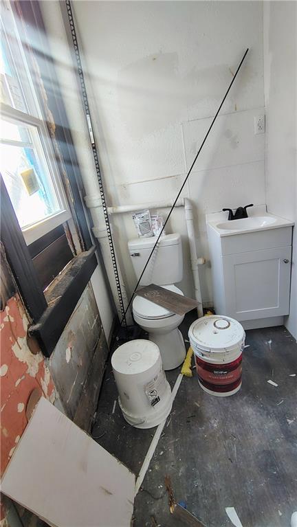 Half bath featuring concrete floors and vanity