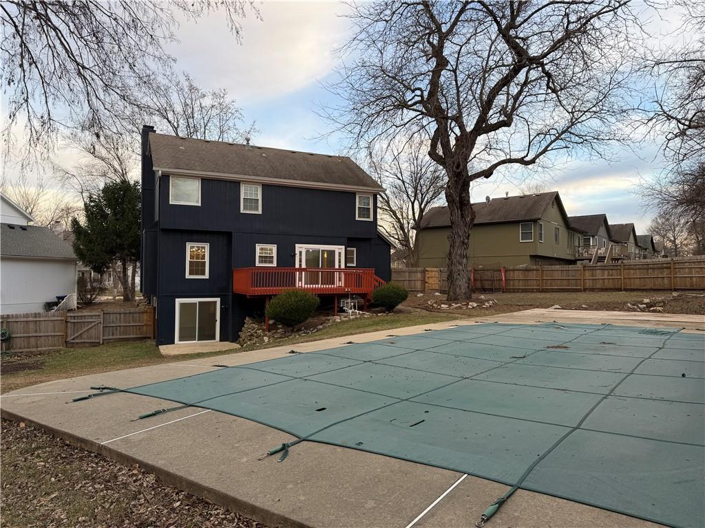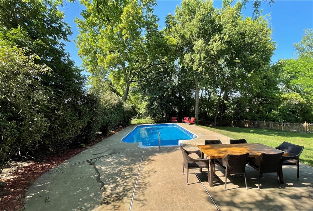 Tucked away on a cul-de-sac in the sought-after Blue Valley school district, this Willow Bend beauty is centered around a truly exceptional outdoor retreat. Set on a lush, .36-acre treed lot with fenced backyard featuring a beautiful in-ground pool surrounded by an expansive patio—perfect for summer gatherings, morning swims, or relaxing evenings under the trees. The deck overlooks the serene backyard and pool, offering the ideal space for dining, hosting, or simply unwinding. Inside, the home continues to impress with a welcoming great room showcasing a brick fireplace framed by built-in bookshelves. The kitchen has been completedly updated with white cabinetry, quartz countertops, a large island, stainless steel appliances, and pantry. The finished walkout lower level is designed with entertaining in mind, providing direct access to the pool and lower patio. The primary suite offers a walk-in closet and spa-inspired bath highlighted by marble countertops, dual vanity, tile floors, a corner whirlpool tub, and a stylish sliding barn door that adds warmth and privacy. Additional highlights include updated windows, newer garage doors, and updated lighting. Move-in ready as washer, dryer and refrigerator all stay! Close to Bluhawk, restaurants, shopping, schools, and parks. Green Meadows and Creekside park with trails, creek, green space, two playgrounds, and picnic shelter is just a short walk down the street. Don’t wait on this one!